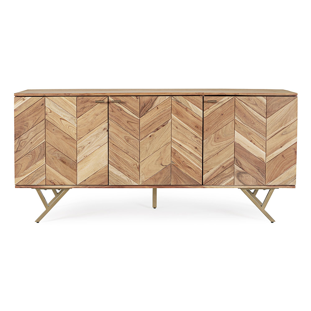 Sideboard aus Akazienholz mit 3 Türen und Stahlbeinen im Ethno-Design.