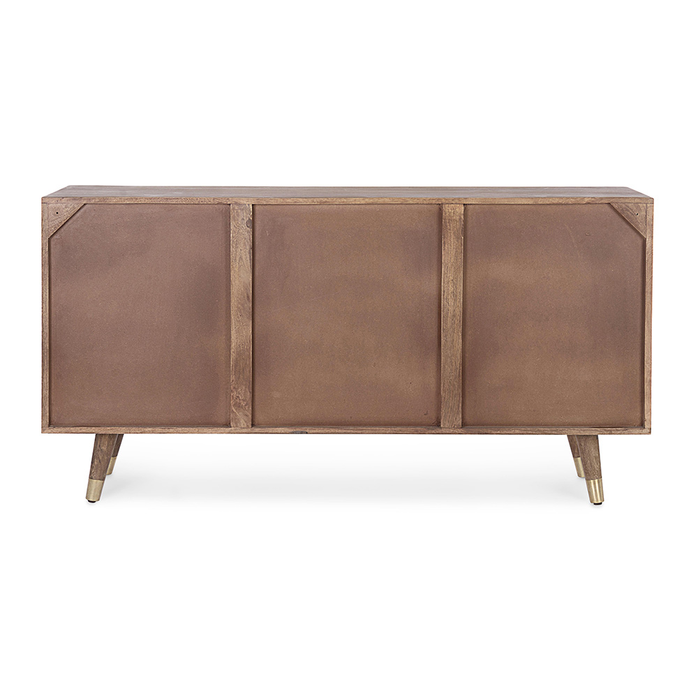 Dieses Design-Sideboard für das Wohnzimmer hat eine Mangoholzstruktur mit einer MDF-Rückseite.