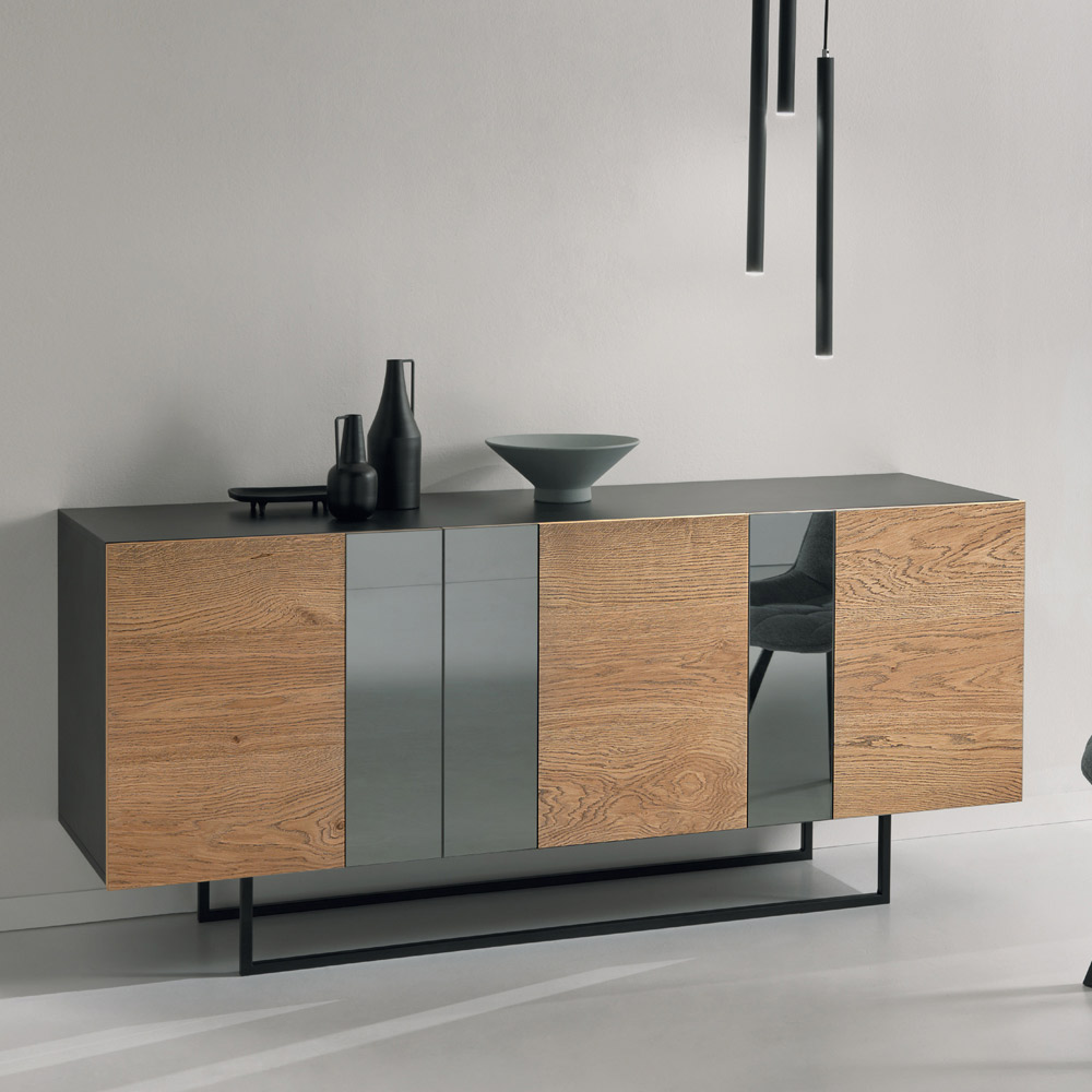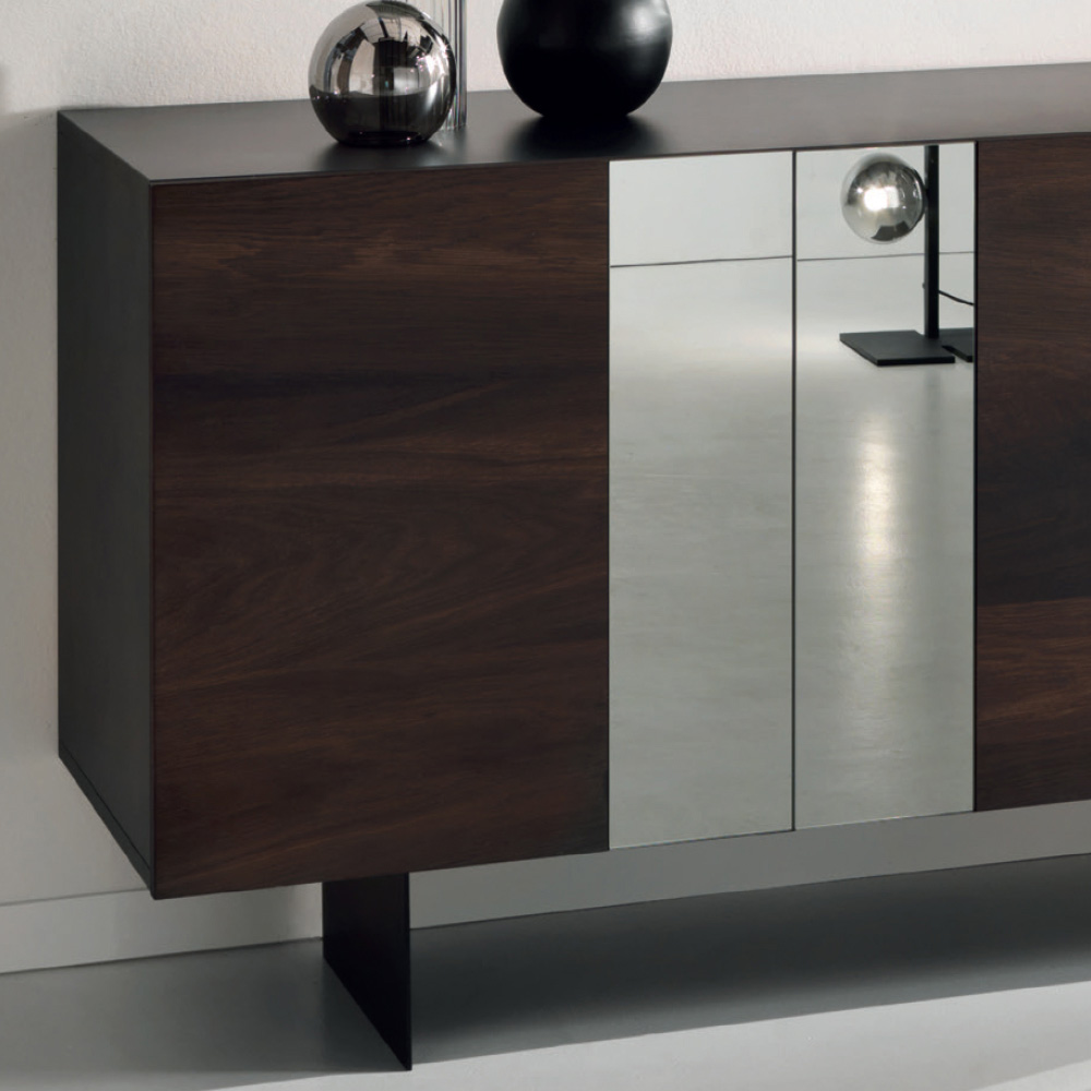 Wohnzimmer-Sideboard aus Melamin mit Einsätzen aus geräuchertem Spiegel Made in Italy.
