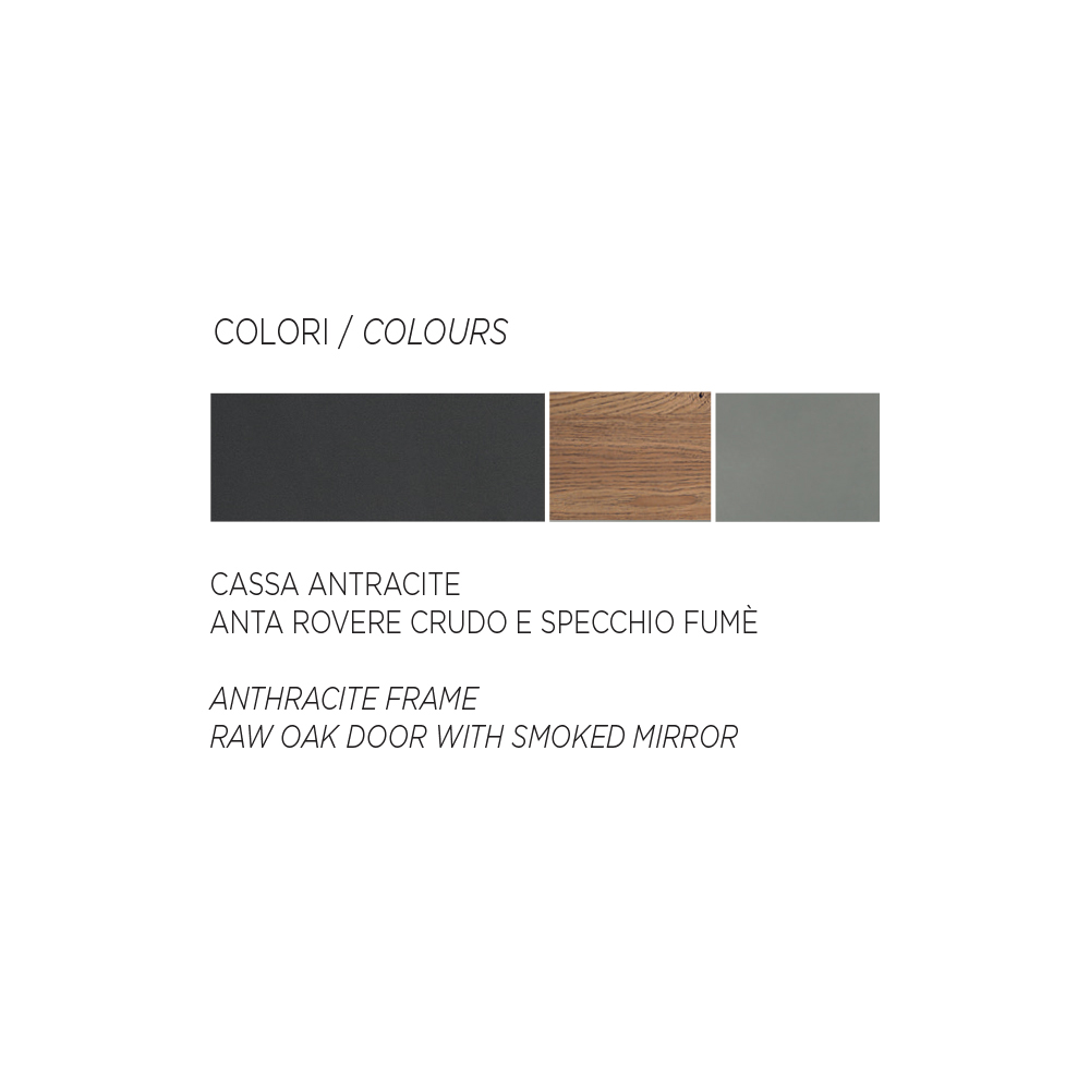 - Türen aus thermischer Eiche und geräucherter Spiegel.