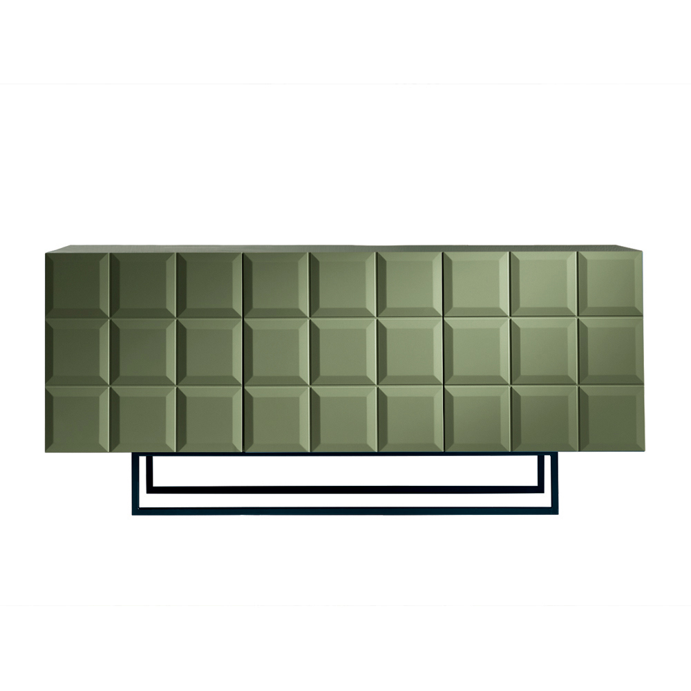 In Italien gefertigtes Designer-Sideboard mit geprägten geometrischen Türen und Metallgestell
