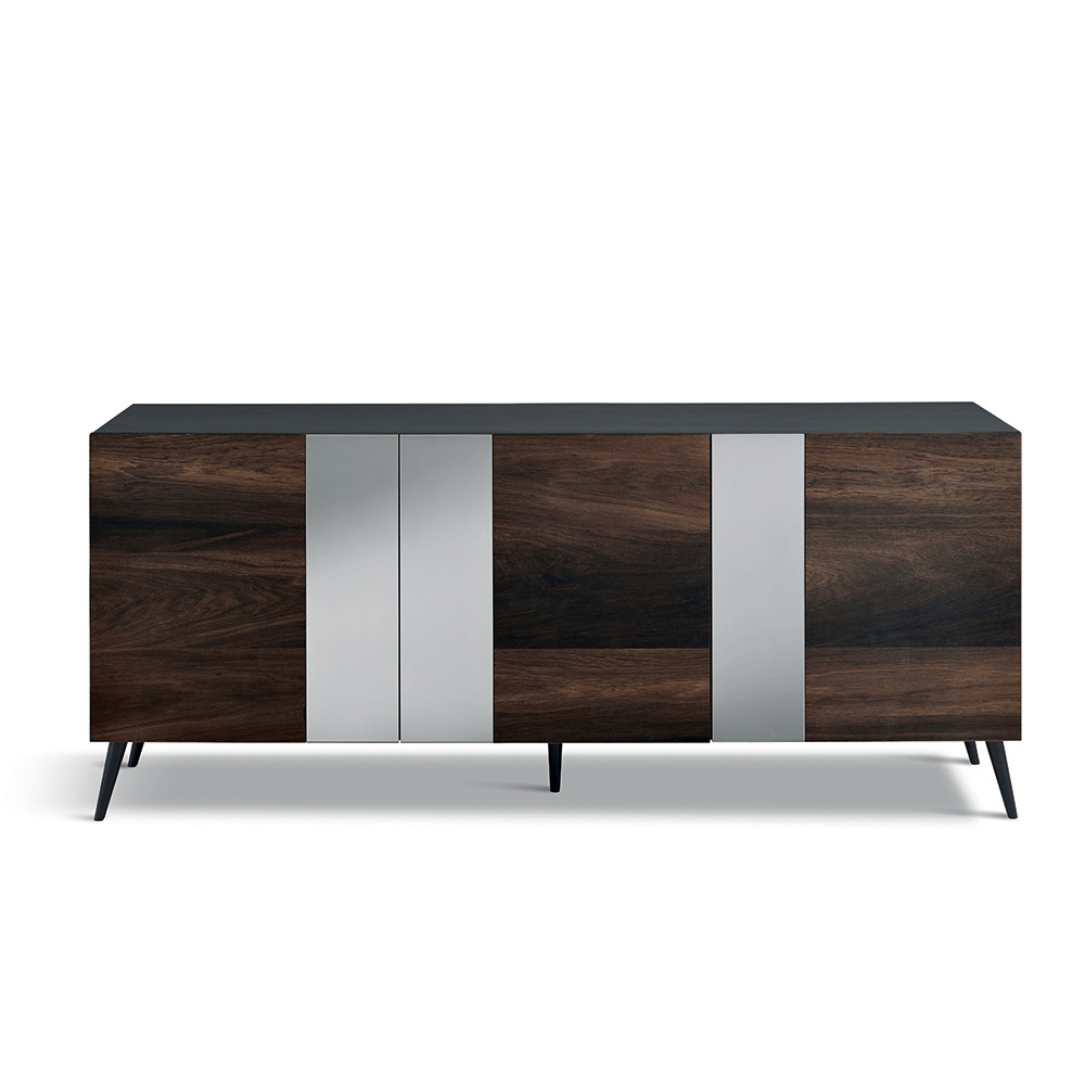 Italienisches Designer-Sideboard mit Eichentüren und vertikalen Spiegeleinsätzen