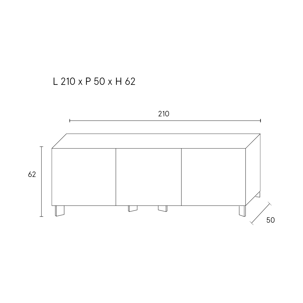 Im Inneren ist das Sideboard mit 3 Regalböden ausgestattet, die sich ideal zum Ordnen von Geschirr, Büchern oder Dekorationsgegenständen eignen und somit eine perfekte Kombination aus Ästhetik und Funktionalität bieten.