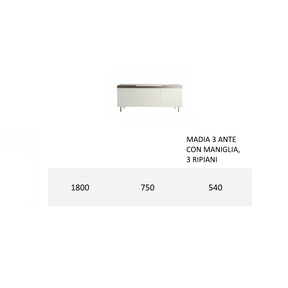 L 180 x P 54 x H 75 cm (3 Türen);