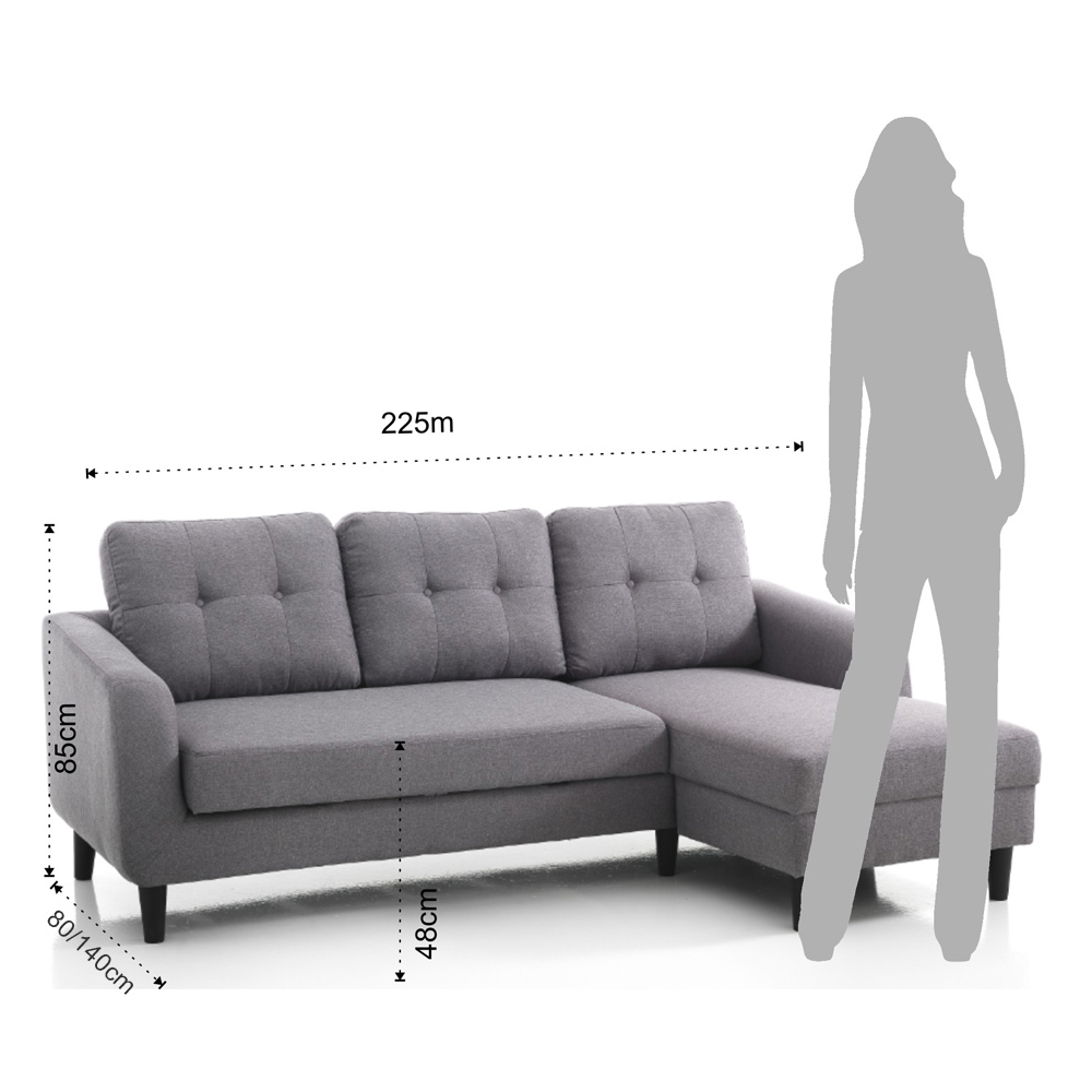 Sofa: Länge 225 cm x Tiefe 80/140 cm x Höhe 85 cm