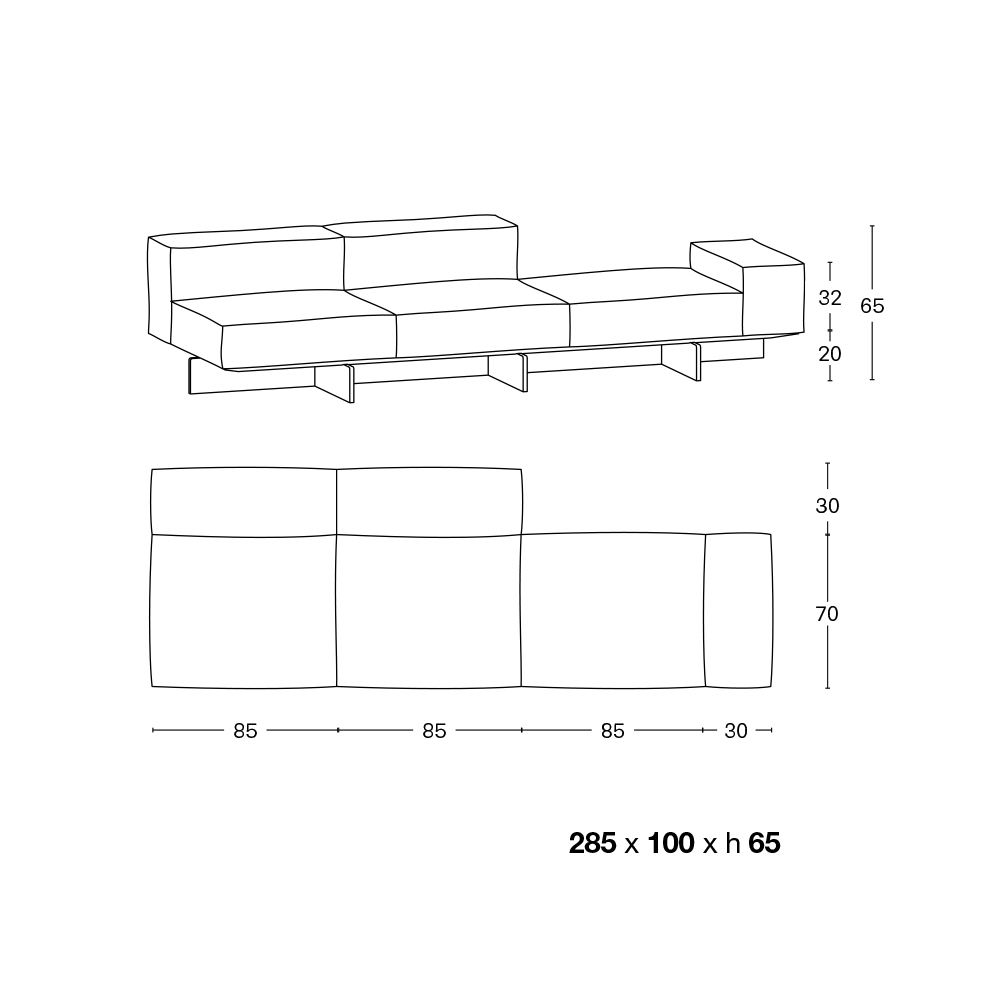 Länge 285 cm x Tiefe 100 cm x Höhe 65 cm