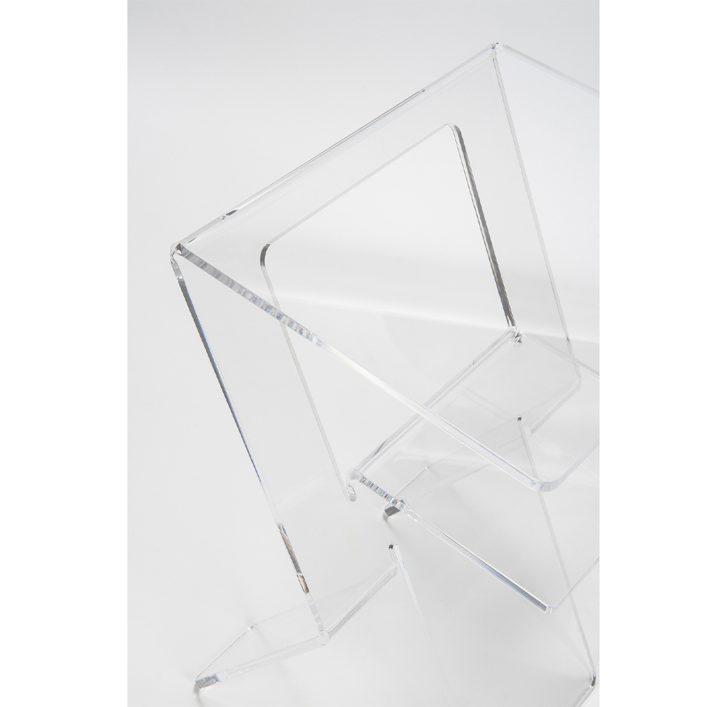 Dieser Sofa-Beistelltisch besteht vollständig aus transparentem Plexiglas, das dank seiner physikalisch-technischen Eigenschaften das Produkt zu einem machtsowohl für den Innen- als auch für den Außenbereich geeignet. Sein dezentes und geradliniges Design verfügt über eine doppelte Ablage für mehr Funktionalität und unterstreicht die Helligkeit und Brillanz , die im Laufe der Zeit konstant und unverändert bleiben.