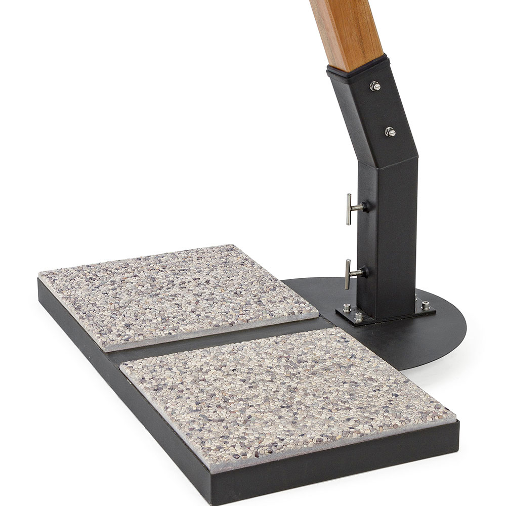 Struktur in Holz mit Teaklack auf Nitrocellulosebasis. 93x93 mm Stange, 8 20x35 mm Rippen mit Aluminiumenden und Ledereinsätzen . Holzkrone. Seitenfuß aus Stahl. Manuell drehbarer 180 ° Pol. Polyestergewebe 270 g / m2 in Ecru-Farbe mit Pa (Polyamid) -Beschichtung. Fliesen nicht enthalten . Die Verwendung von mindestens 4 Fliesen (100 kg) wird empfohlen.