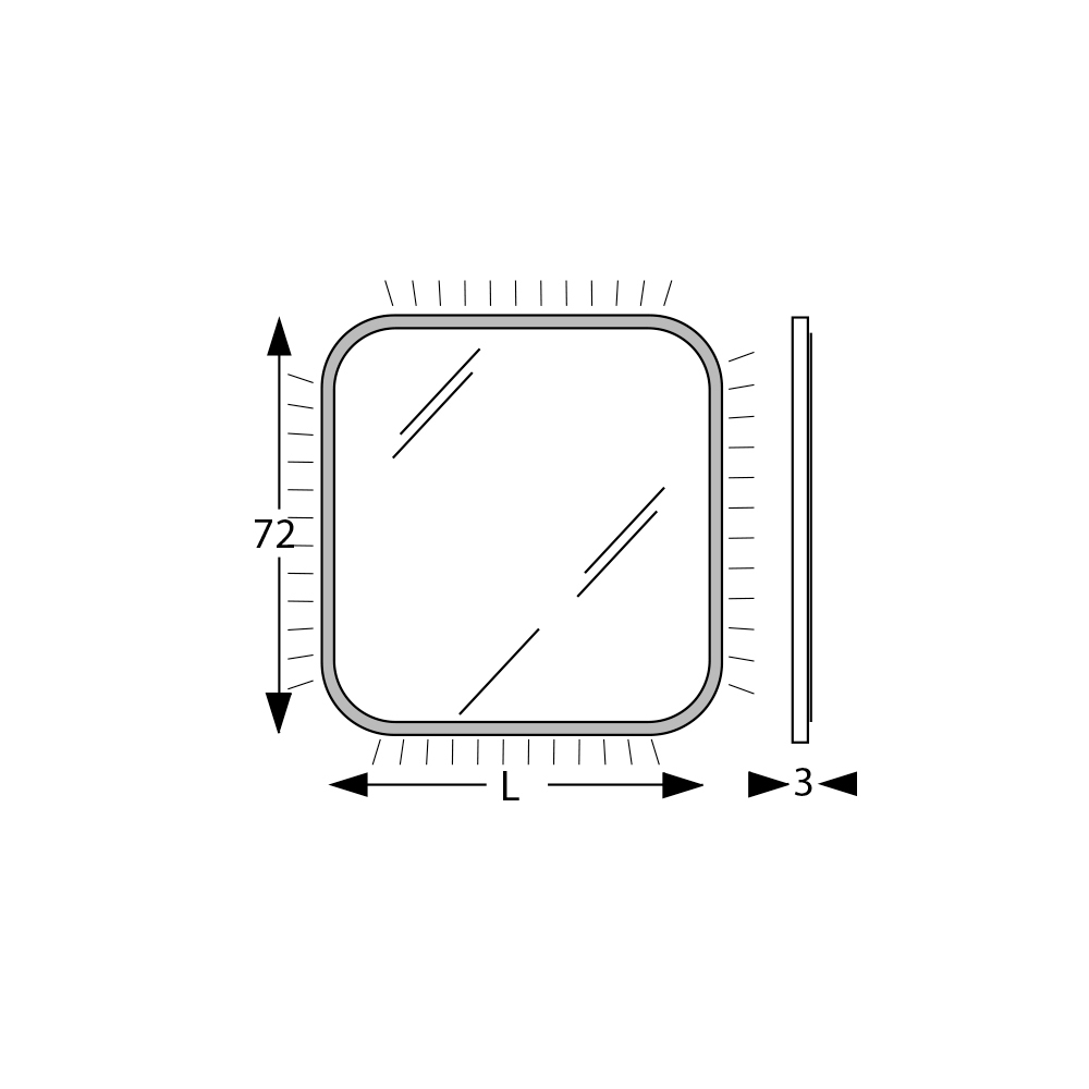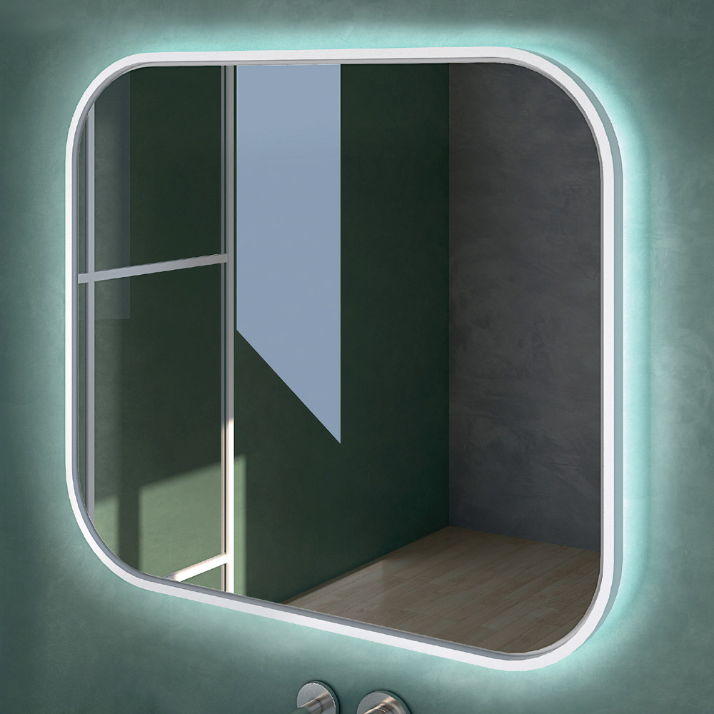 Die abgerundete Form mit raffinierten Ecken macht diesen Spiegel zu einer vielseitigen und attraktiven Ergänzung für eine Vielzahl von Räumen, vom Badezimmer bis zum Schlafzimmer oder als markanten Akzent in einem Wohnbereich. Die LED-Technologie unterstreicht nicht nur das einzigartige Design, sondern ist auch energieeffizient und sorgt für eine langlebige Beleuchtung.