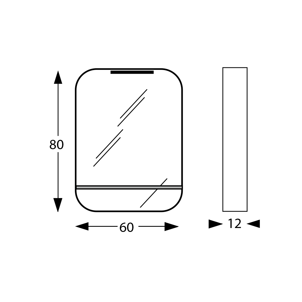Dieser rechteckige Spiegel mit abgerundeten Kanten ist ein wahrer Triumph des modernen Designs. Sein Metallrahmen ist ein klares Statement für Eleganz und Stil , während die integrierte Glasablage für einen Hauch anspruchsvoller Funktionalität sorgt.
