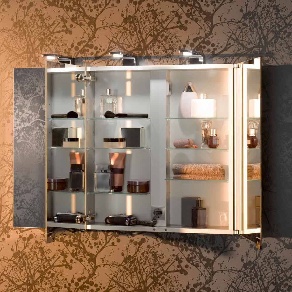 Spiegelbehälter mit 3 Kristalltüren und 3 LED-Lichtern, Precious - Maxi