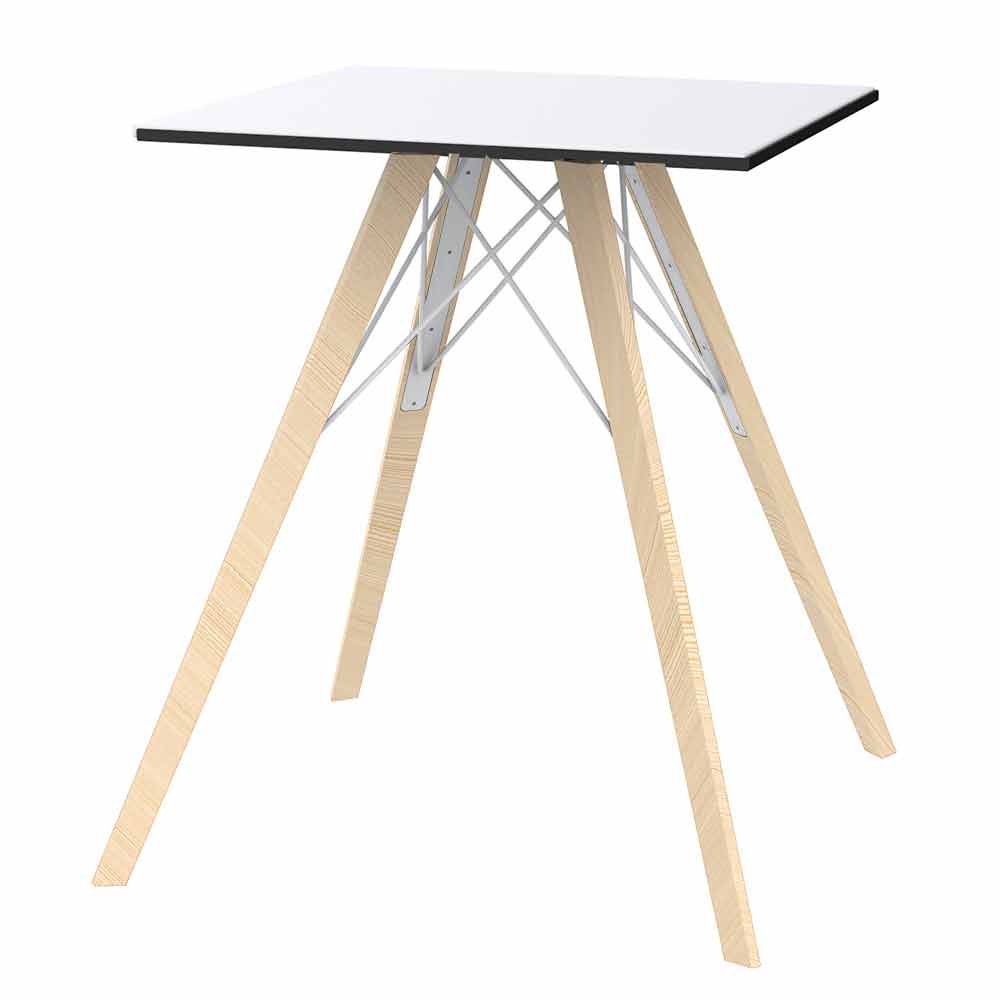 Quadratischer Esstisch aus Eschenholz und weißer oder schwarzer HPL-Platte und 3 Größen, 4 Stück.