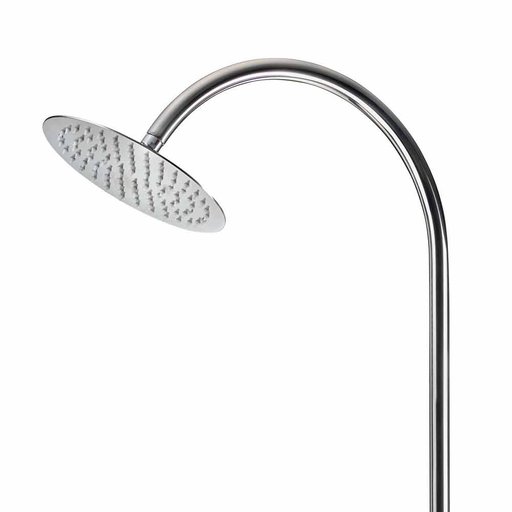 Gartenduschsäule mit Säule, Sockel und Brausearm aus poliertem Edelstahl AISI 316L (2 mm dick), Brausekopf aus Edelstahl AISI 304. Dieses in Italien handgefertigte Einrichtungsaccessoire für den Außenbereich zeichnet sich durch einfaches Design und moderne Linien aus, die ihm Persönlichkeit und Charakter verleihen. Neben seiner eleganten Ästhetik hat es auch eine wichtige funktionale Seite, da es hohe technische Leistung gewährleistet, die durch die besondere Liebe zum Detail und die Auswahl hochwertiger Materialien ermöglicht wird. Um seine Funktionalität zu erhöhen, wurde der praktische zeitgesteuerte Wasserhahn hinzugefügt, mit dem sich Wasserverschwendung vermeiden oder minimieren lässt. Diese Dusche ist ideal für die unterschiedlichsten Außenbereiche wie Strandresorts und Touristeneinrichtungen, aber auch private Umgebungen wie Schwimmbäder und Gärten. Sie liefert nur kaltes Wasser, sodass Sie sich an besonders heißen und sonnigen Tagen abkühlen können.