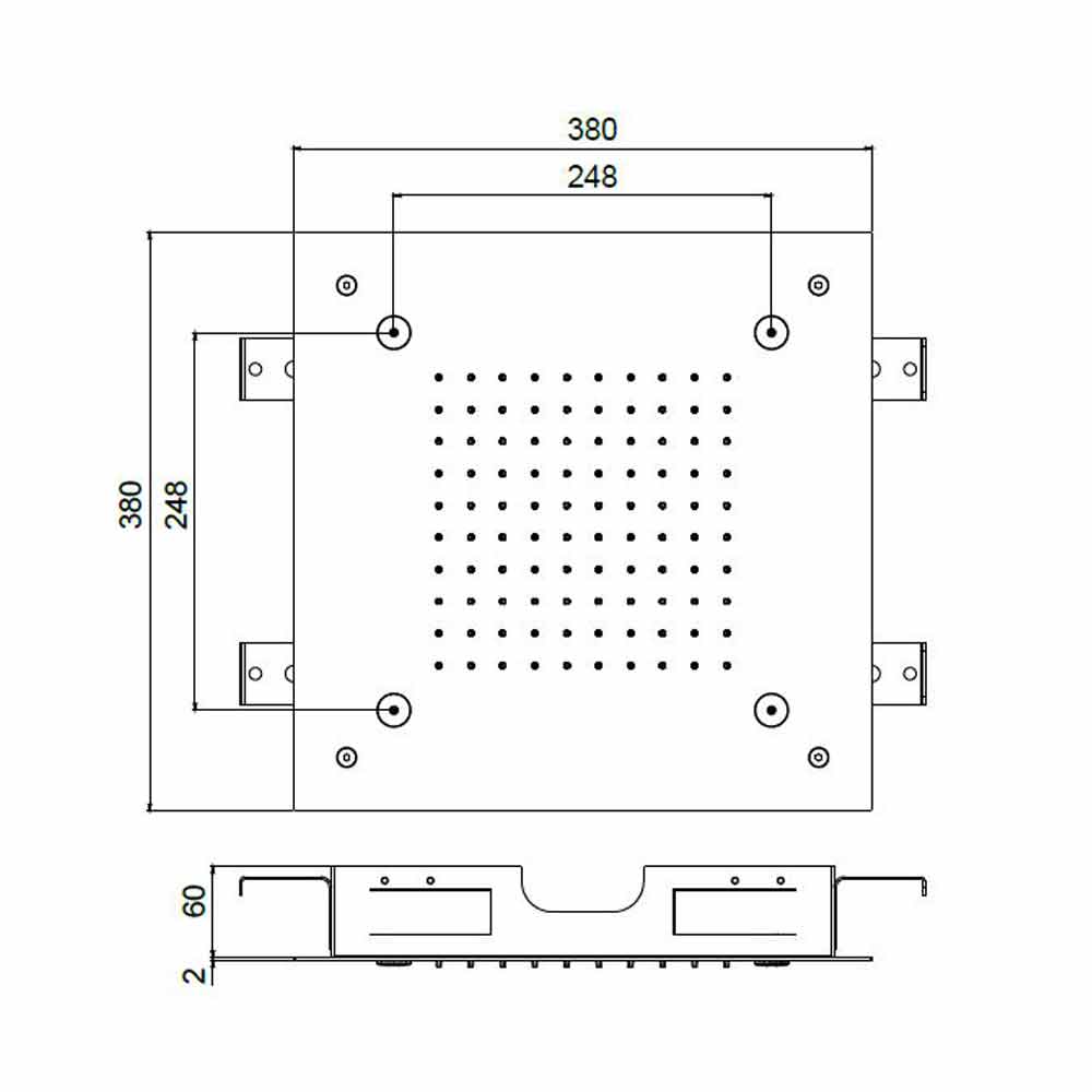 Quadratischer Duschkopf aus Stahl mit Regenstrahl und Zerstäubern, hochwertiges Produkt, Made in Italy.