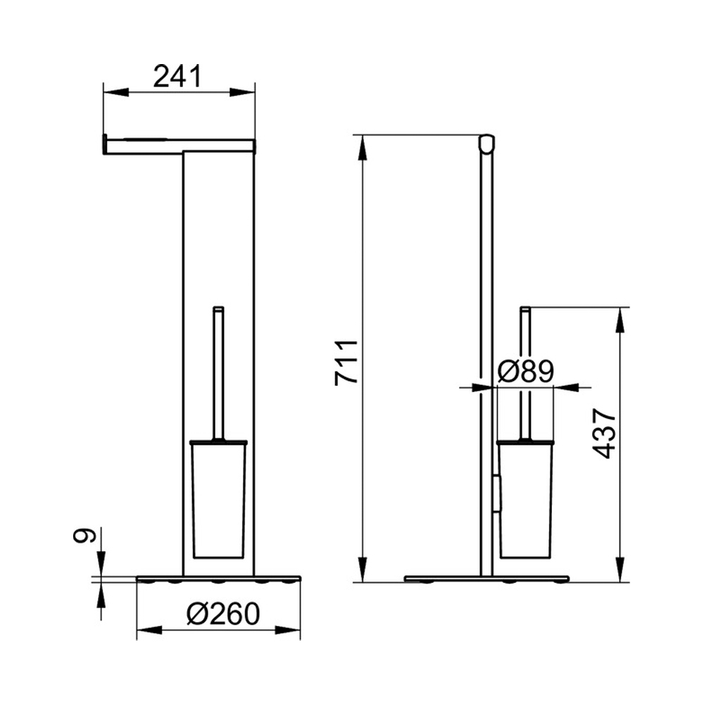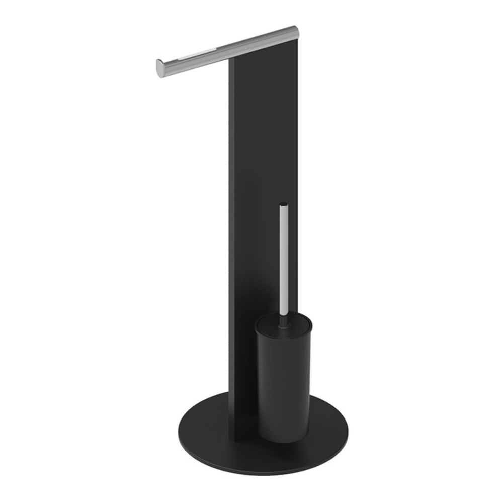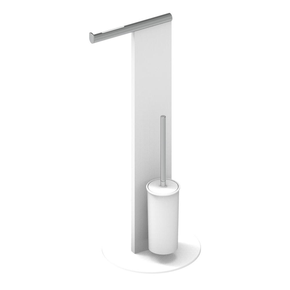 Dieser freistehende Papierrollenhalter und WC-Bürstenhalter für das Badezimmer ist komplett aus weiß oder schwarz und verchromtem Aluminium gefertigt.