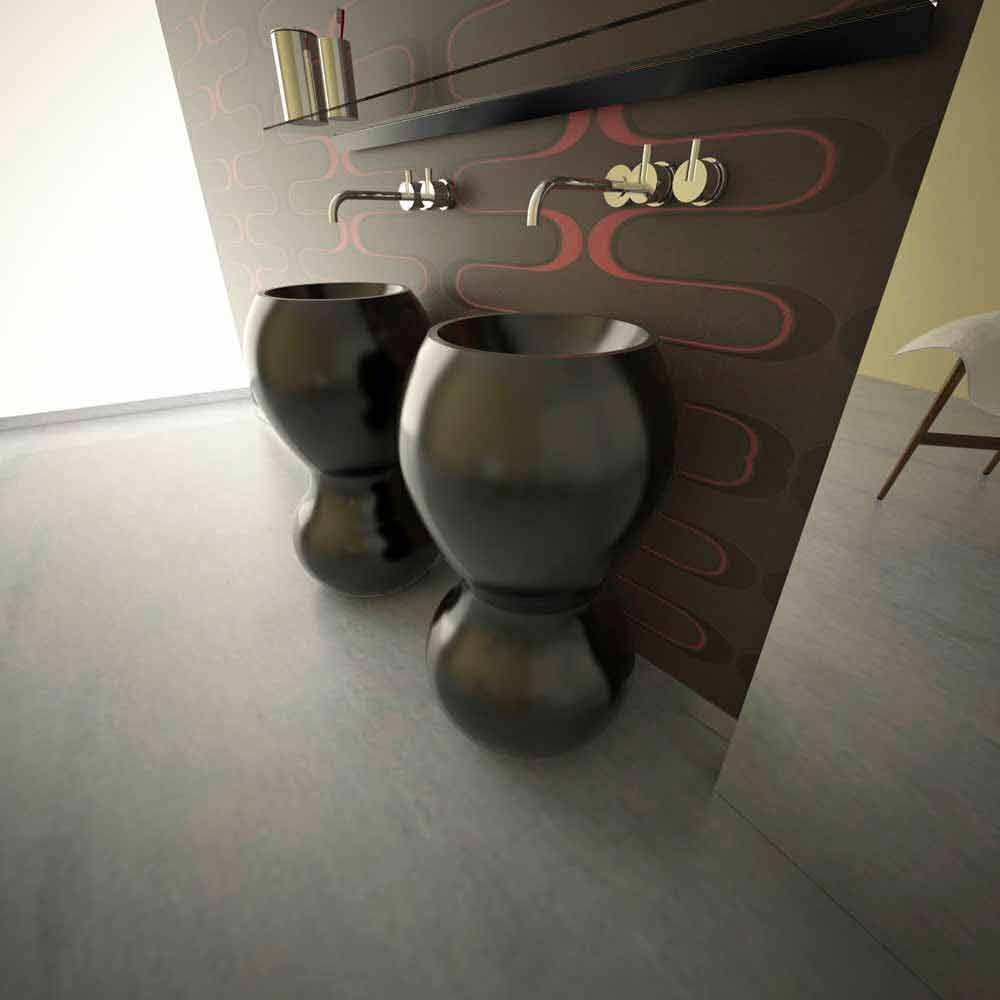 Design-Waschbecken. Material: Feste Oberfläche; Abgerundete Formen, monolithisches Erscheinungsbild, kompakt, widerstandsfähig und angenehm im Griff. Dieses Standwaschbecken ist sehr originell. Außen matt lackiert, innen glänzend lackiert. Erhältlich in verschiedenen Farben.
