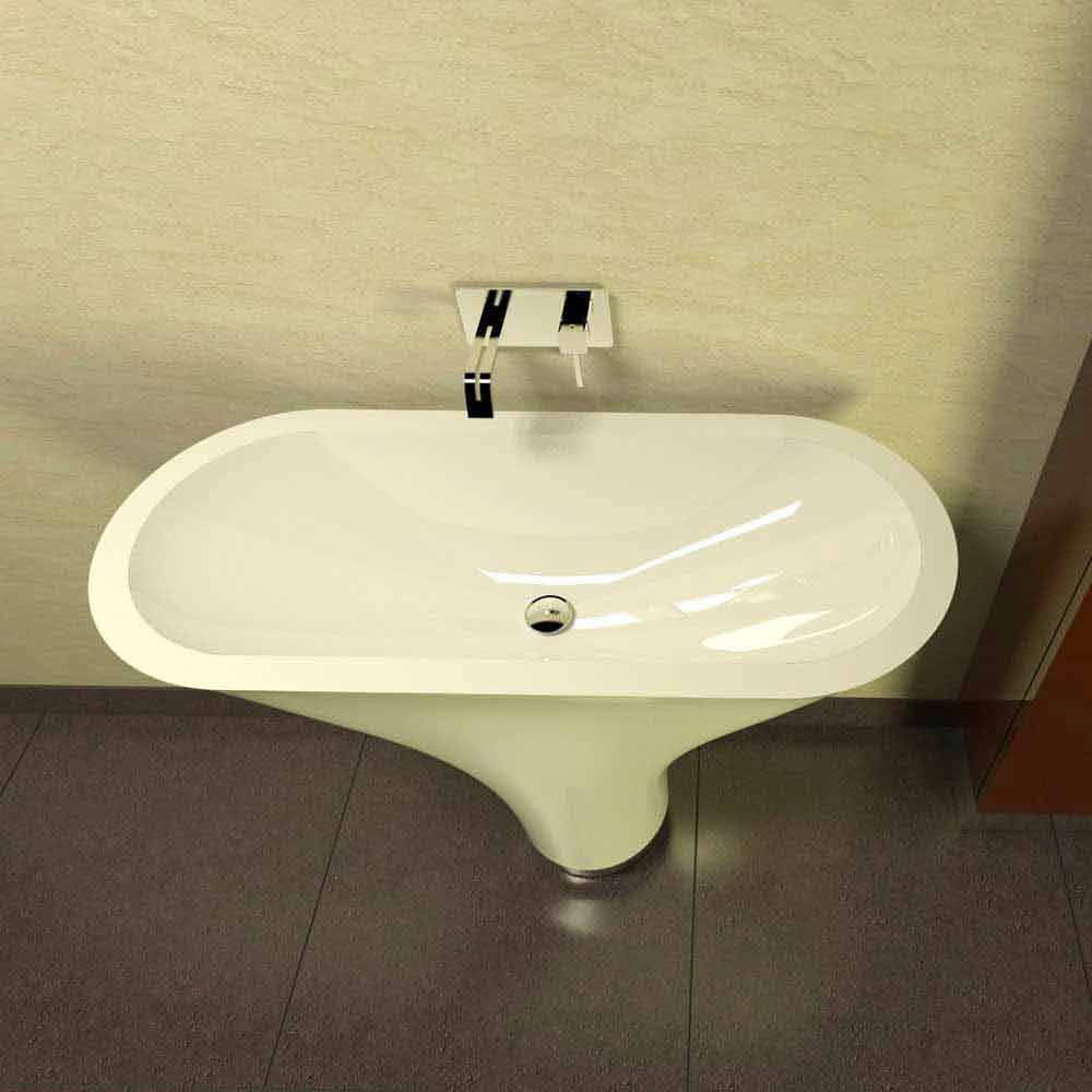 Design-Waschbecken. Material: Feste Oberfläche; Ein eleganter Säulenwaschtisch mit großzügigen Abmessungen, der eine starke Designpersönlichkeit ausstrahlt. Zuallererst ein Design-Möbelstück mit einem klassischen Stil in der Welt der Badezimmermöbel, aber gleichzeitig innovativ für die Verwendung von Harzmaterialien, kombiniert mit einer Stahlplatte, um die Säule des Waschbeckens zu vervollständigen und es zu einem Design zu machen Objekt. einfach einzigartig. Hochglanz lackiert. Erhältlich in verschiedenen Farben.