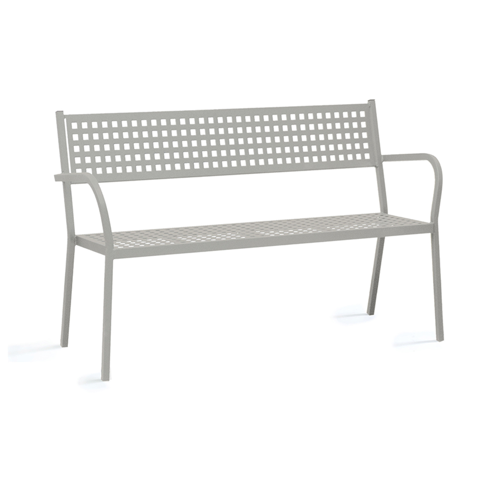 Bequeme Gartenbank, komplett in Italien aus verzinktem Stahl hergestellt . Die besondere und innovative Verarbeitung des Materials ermöglicht es dem Möbelstück, sich an jeden Außenbereich anzupassen, es wetterbeständig zu machen und eine einfache und schnelle Reinigung und Wartung zu gewährleisten.
