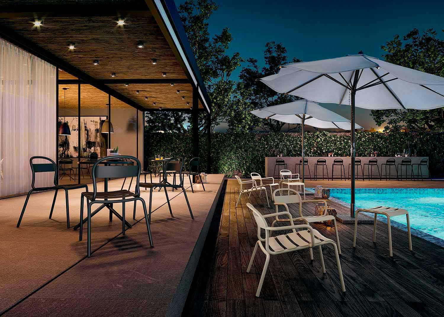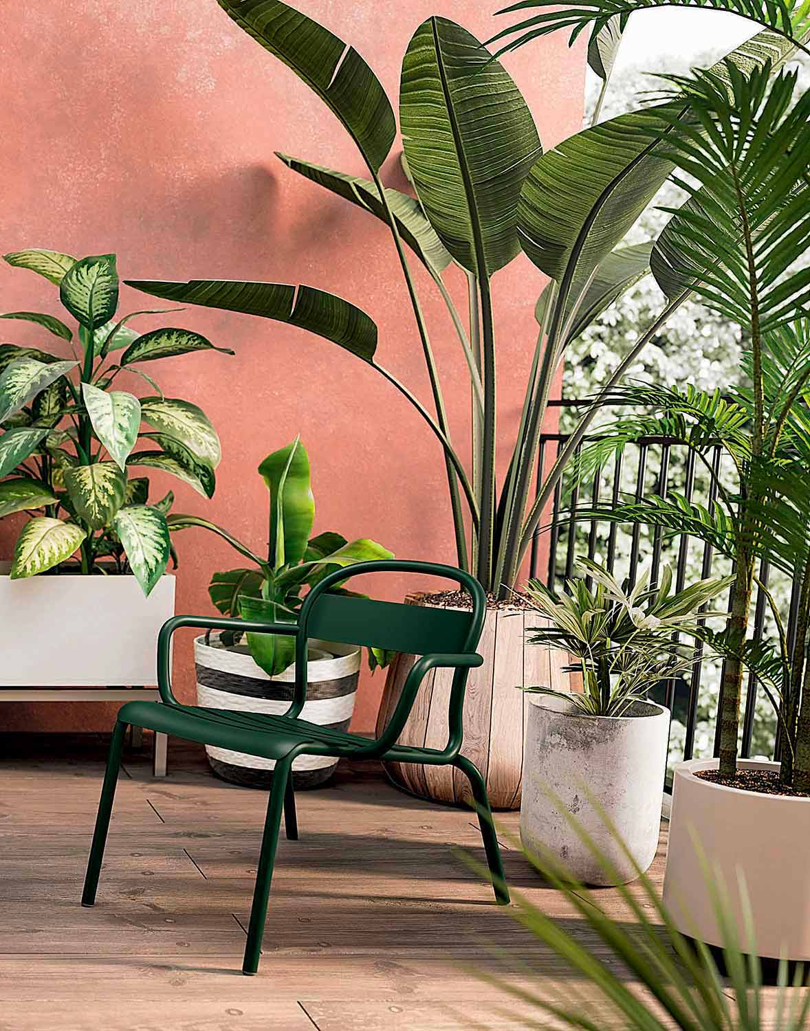 Das Design dieser Chaiselongue macht sie in einem Garten oder auf einer Terrasse leicht vorstellbar, schließt jedoch ihre Verwendung auch in Innenräumen in häuslichen und nicht häuslichen Umgebungen nicht aus. Dank der 8 verfügbaren Farben vollständig aus lackiertem Aluminium gefertigt , passt es sich perfekt an jede Einrichtungssituation an, von der modernsten bis zur traditionellsten, und verleiht dem Raum Farbe und Persönlichkeit.