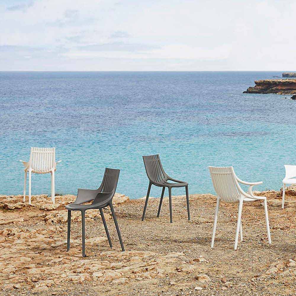 Kissen können auch gekauft werden, nicht im Preis enthalten. Ebenfalls erhältlich ist der Stuhl aus recyceltem Kunststoff aus dem Mittelmeer für eine Revolution bei umweltfreundlichen Möbeln.