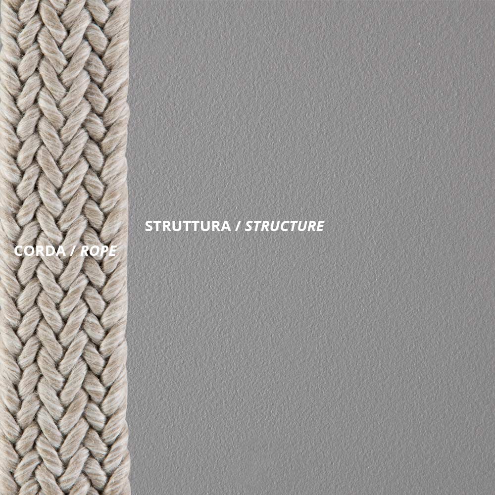 Pflege : Zur regelmäßigen Reinigung der Struktur empfehlen wir, den Sessel alle zwei bis drei Monate mit Feinwaschmitteln zu waschen und ihn anschließend mit ölhaltigen Produkten zu schützen, wenn er in Küstennähe aufgestellt wird. Wir empfehlen außerdem, den Sessel im Winter an einem geschlossenen und trockenen Ort zu lagern, um eine maximale Haltbarkeit des Materials zu gewährleisten. Das Seil lässt sich bequem bei 30° in der Waschmaschine waschen.