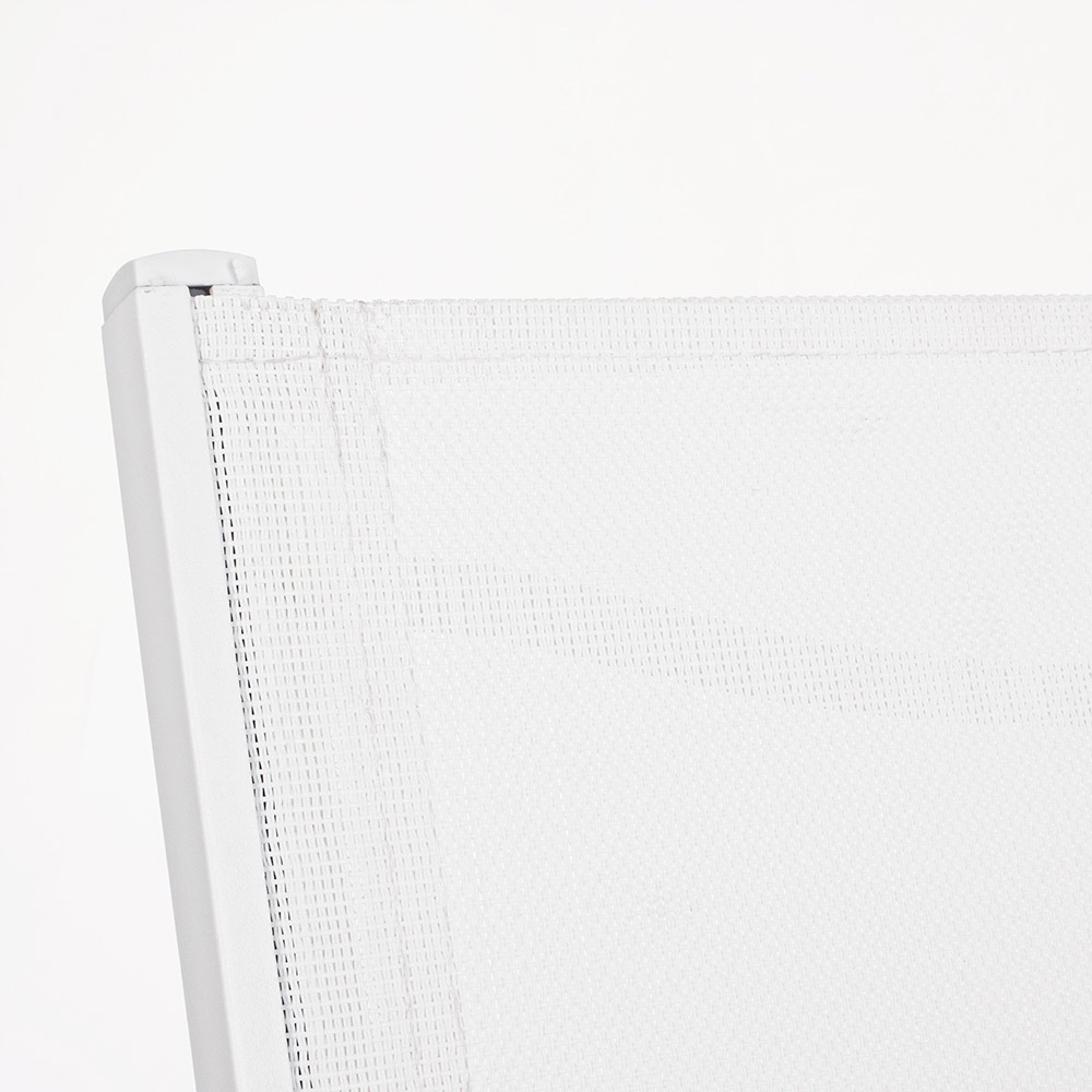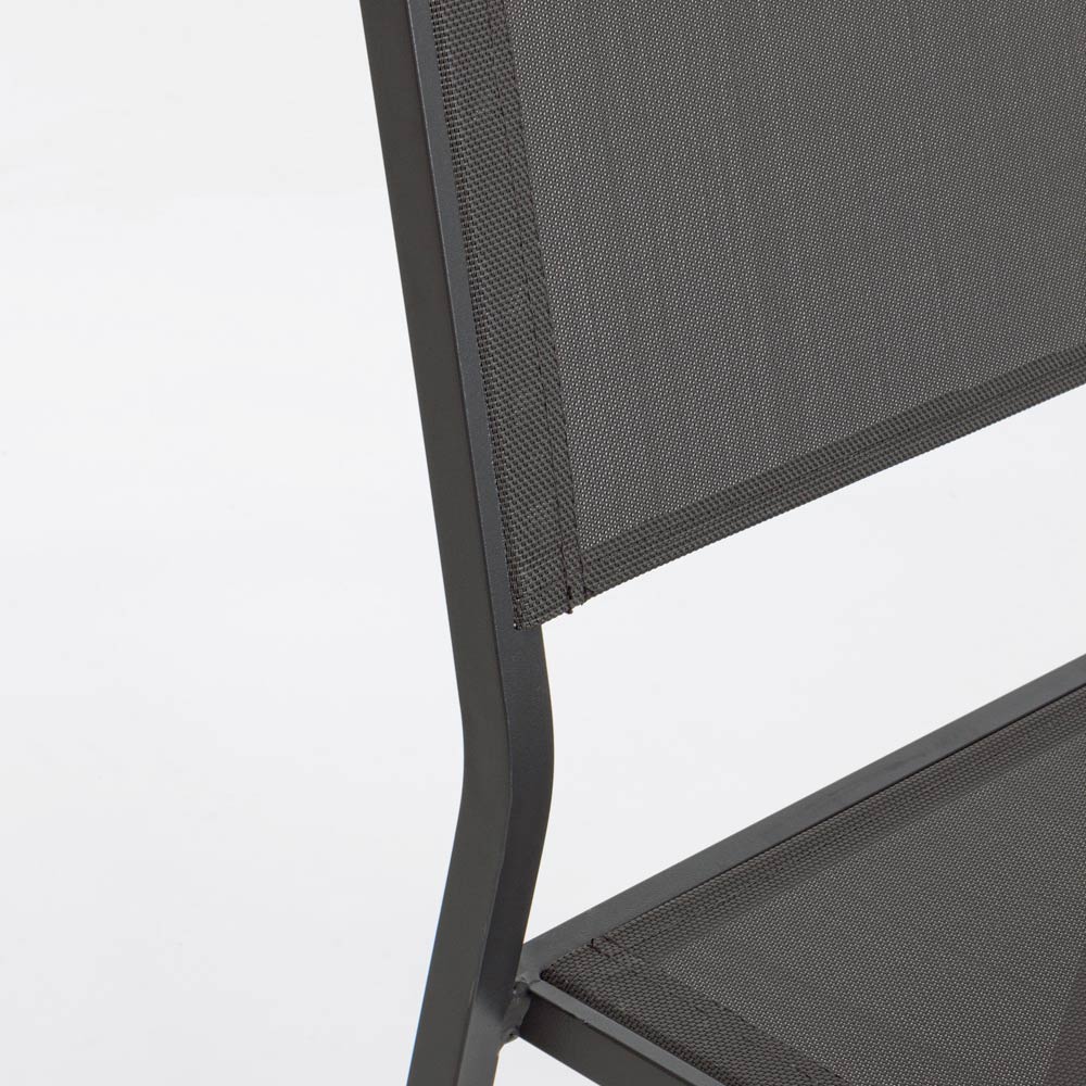 Moderner stapelbarer Gartenstuhl aus Aluminium und Textilien, Outdoor-Artikel.