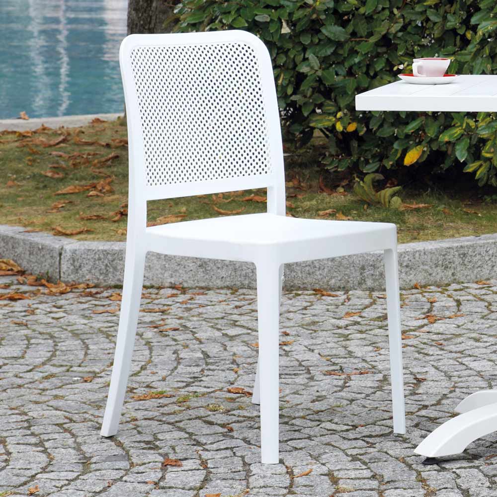 Dieser Gartenstuhl besticht durch sein elegantes und minimalistisches Design und ist perfekt, um jedem Außenbereich einen Hauch von Stil zu verleihen. Die Polypropylenstruktur garantiert Haltbarkeit und Witterungsbeständigkeit und ist somit ideal für den täglichen Einsatz im Freien.
