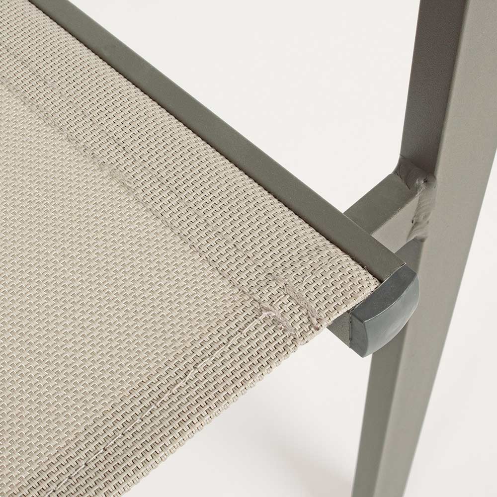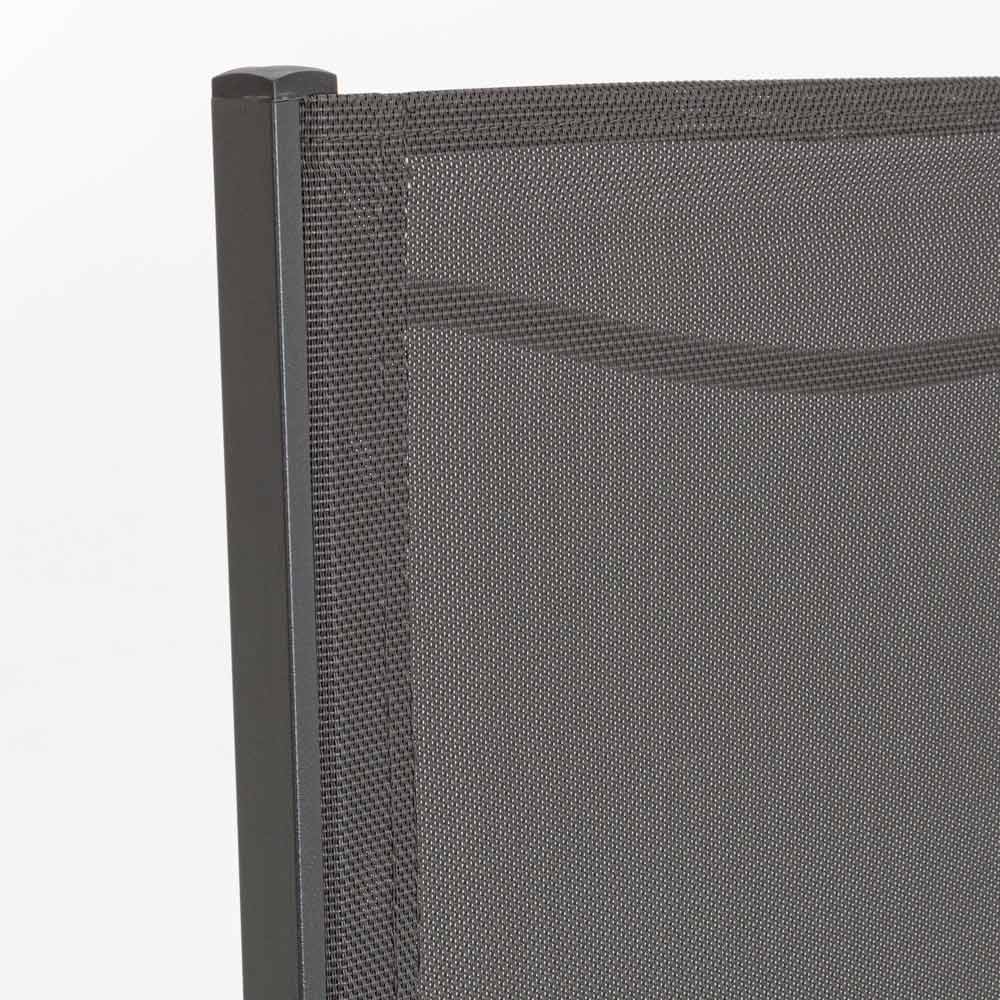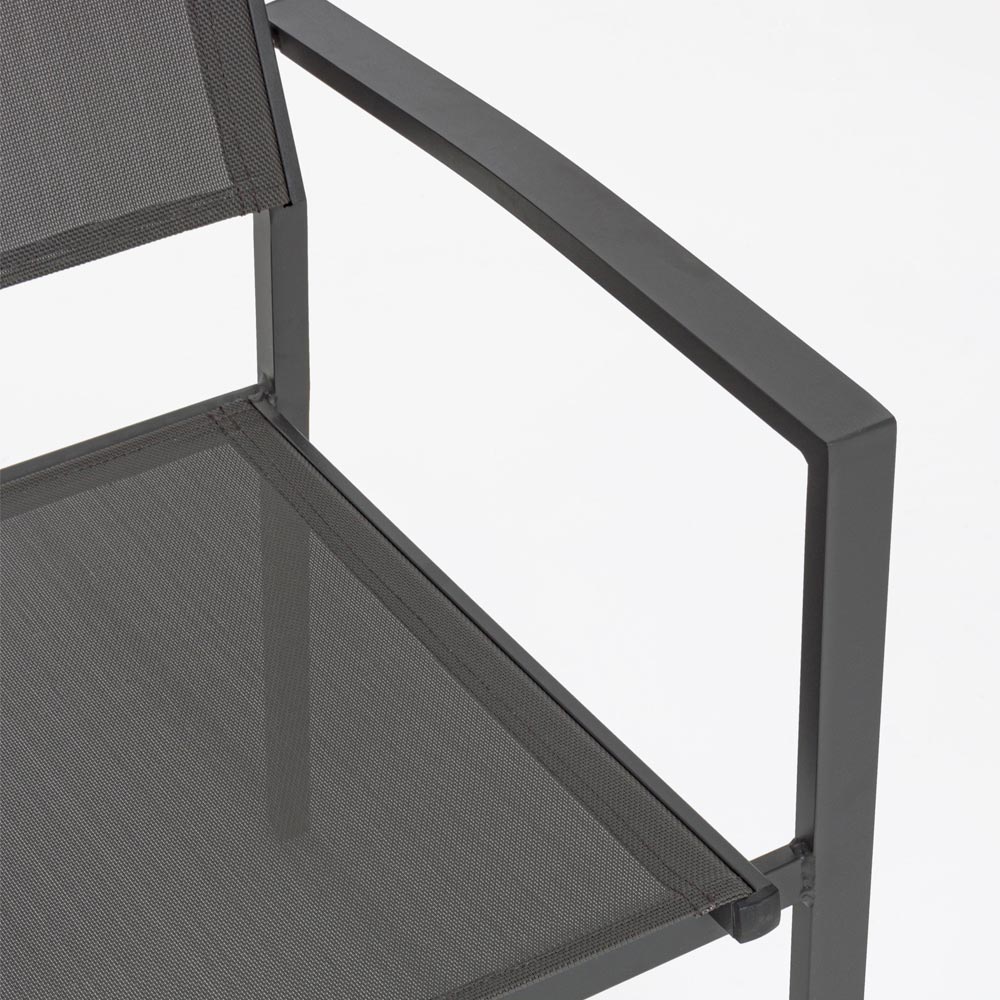 Stapelbarer Gartenstuhl aus Aluminium und Textil, modernes Design.