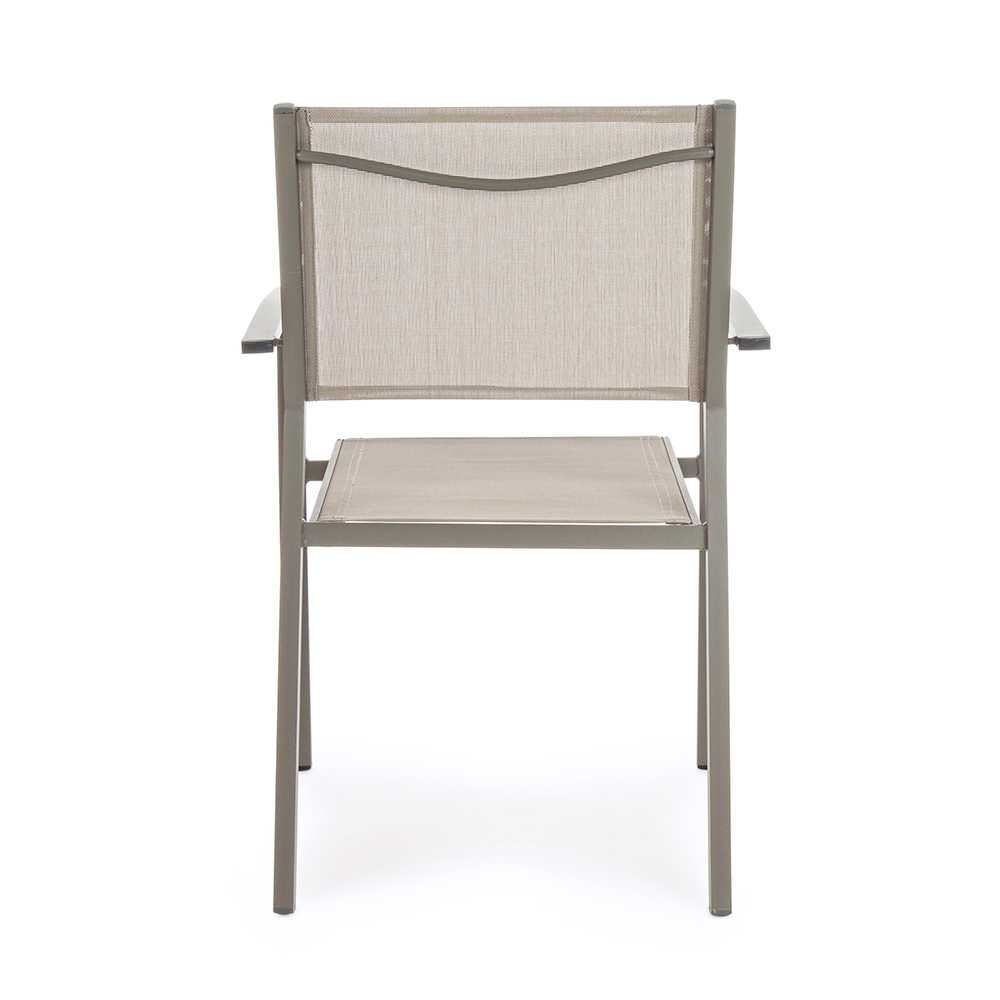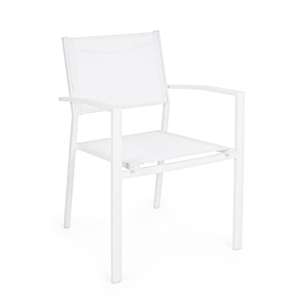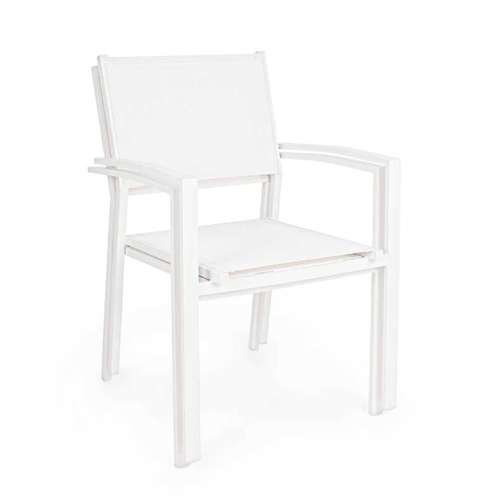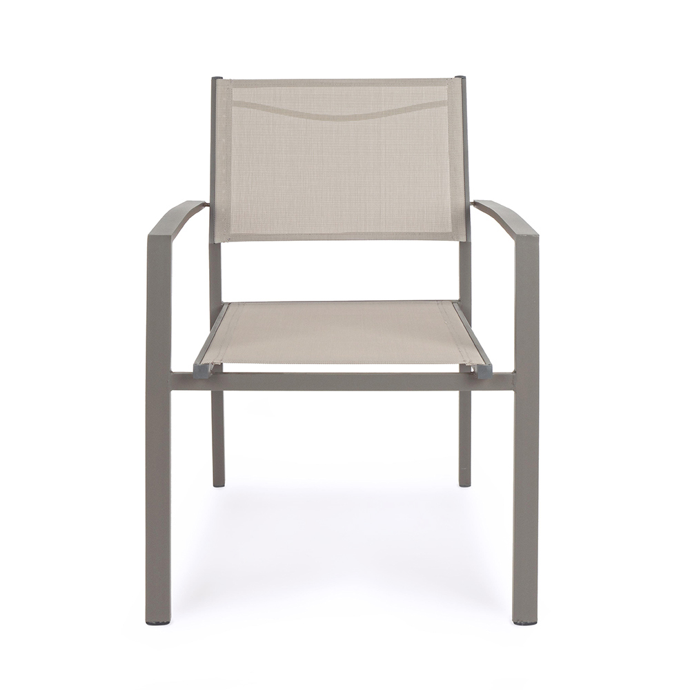 Stapelbarer Gartenstuhl aus Aluminium und Textil, modernes Design.
