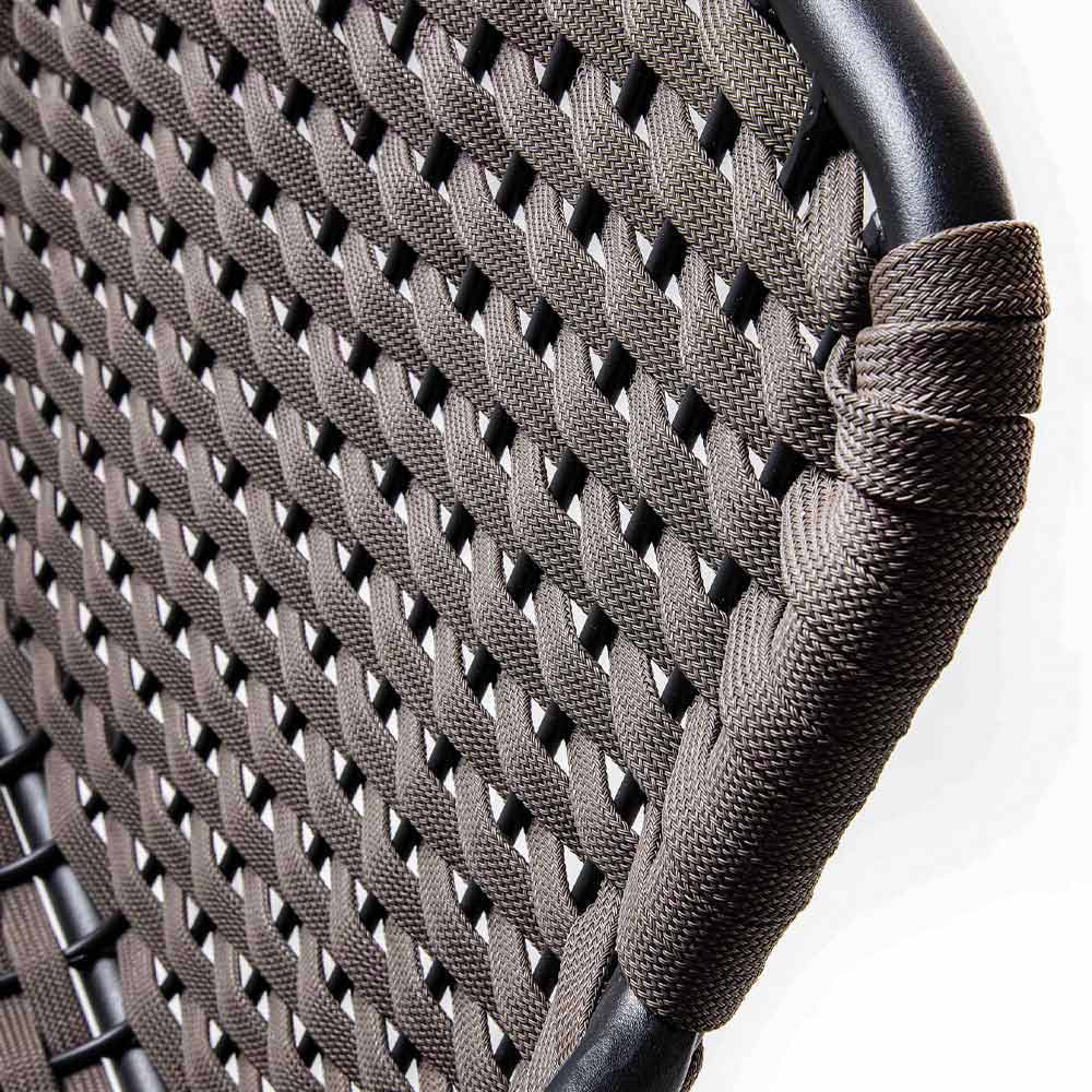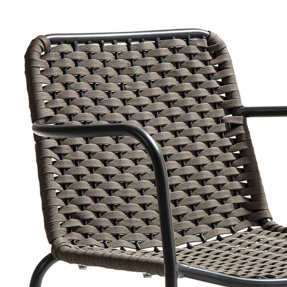 Gartenstuhl aus Anthrazit-Finish verzinktes Metall mit Sitz und Rückenlehne aus gewebtem Polyesterseil (Gummi-Innenseite) Anthrazit-Finish, ausgestattet mit Armlehnen und stapelbarer Struktur. Aus der Begegnung zwischen einem essentiellen und vielseitigen Design und einer funktionalen und komfortablen Ästhetik entsteht ein Sitz, der perfekt zu jeder Situation im Freien passt und eine perfekte Harmonie mit den anderen vorhandenen Elementen schafft oder auf wunderbaren Stilkontrasten spielt, um ein exklusives und stilvolles Ergebnis zu erzielen. Avantgarde .