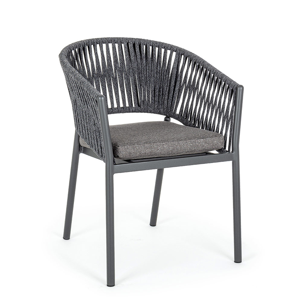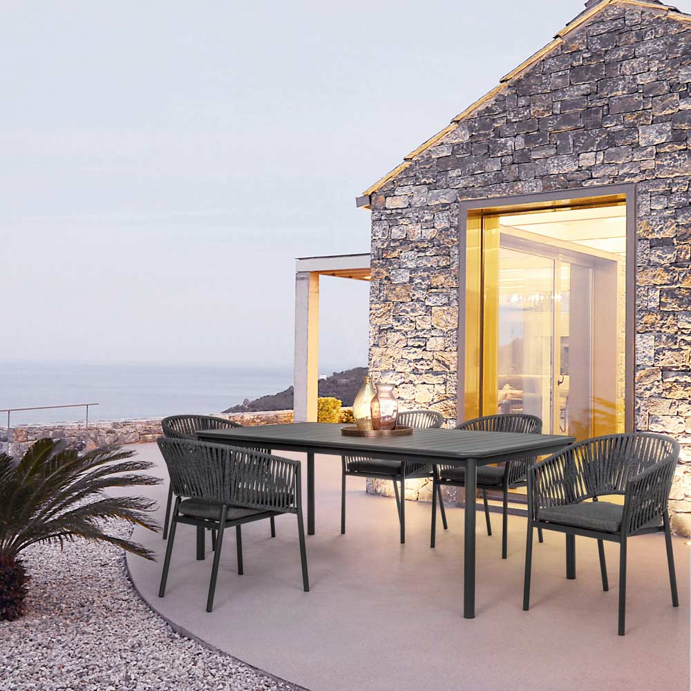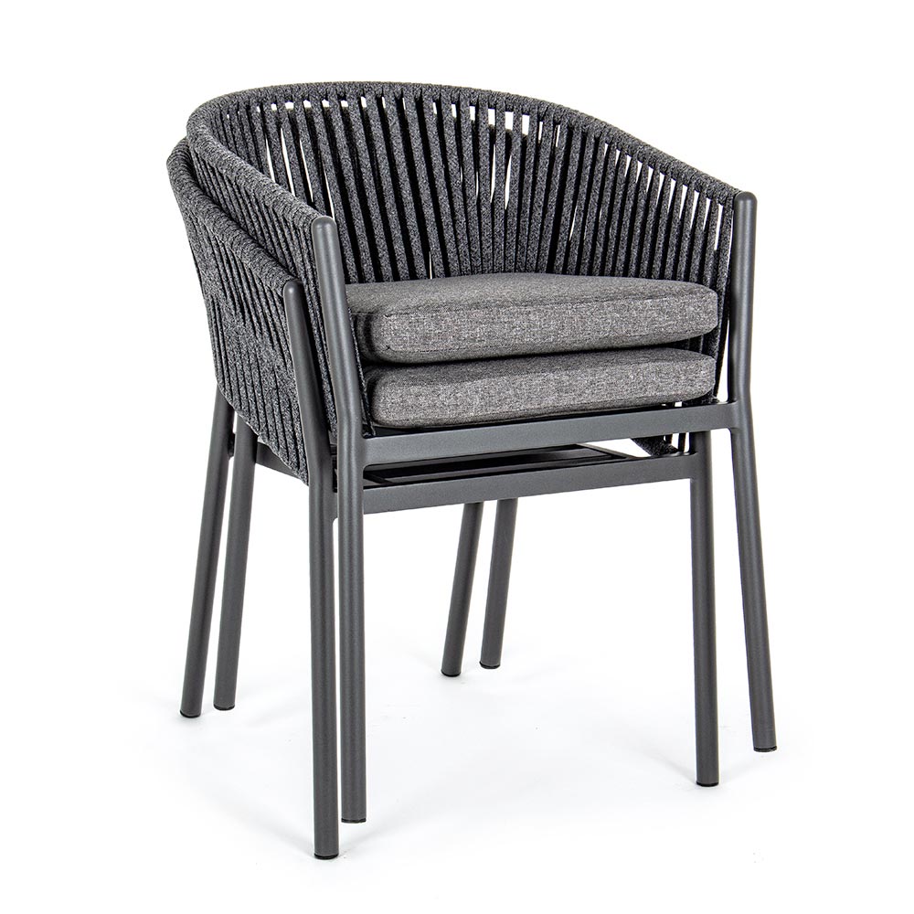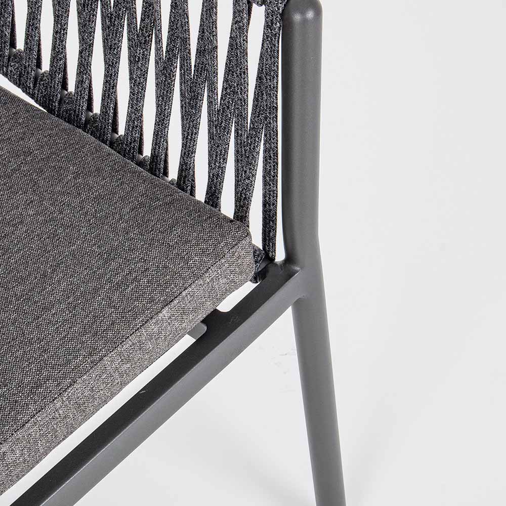Stapelbarer Outdoor-Stuhl aus Aluminium, Seil und 4-teiligem herausnehmbarem Stoff, hohe Qualität.