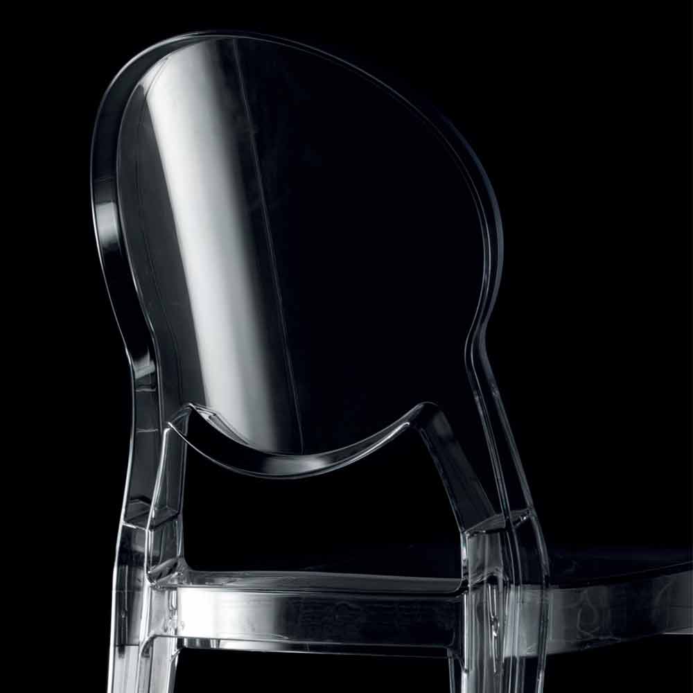 Stapelbarer, moderner Designstuhl für den Außen- und Innenbereich aus transparentem Polycarbonat, hergestellt in Italien.