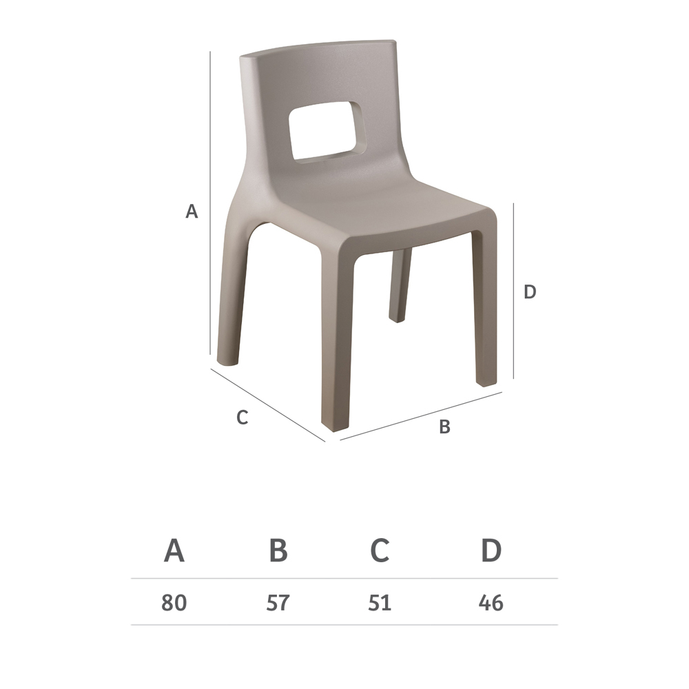 Stapelbarer Küchenstuhl aus Polyethylen für den Außen- und Innenbereich, komplett in Italien hergestellt . Der Stuhl bietet einen besonders angenehmen Sitz mit hohem Komfort sowie einen einfachen, aber faszinierenden Stil, der Harmonie in die Umgebung bringt und sowohl Außen- als auch Wohnräume verwandelt.