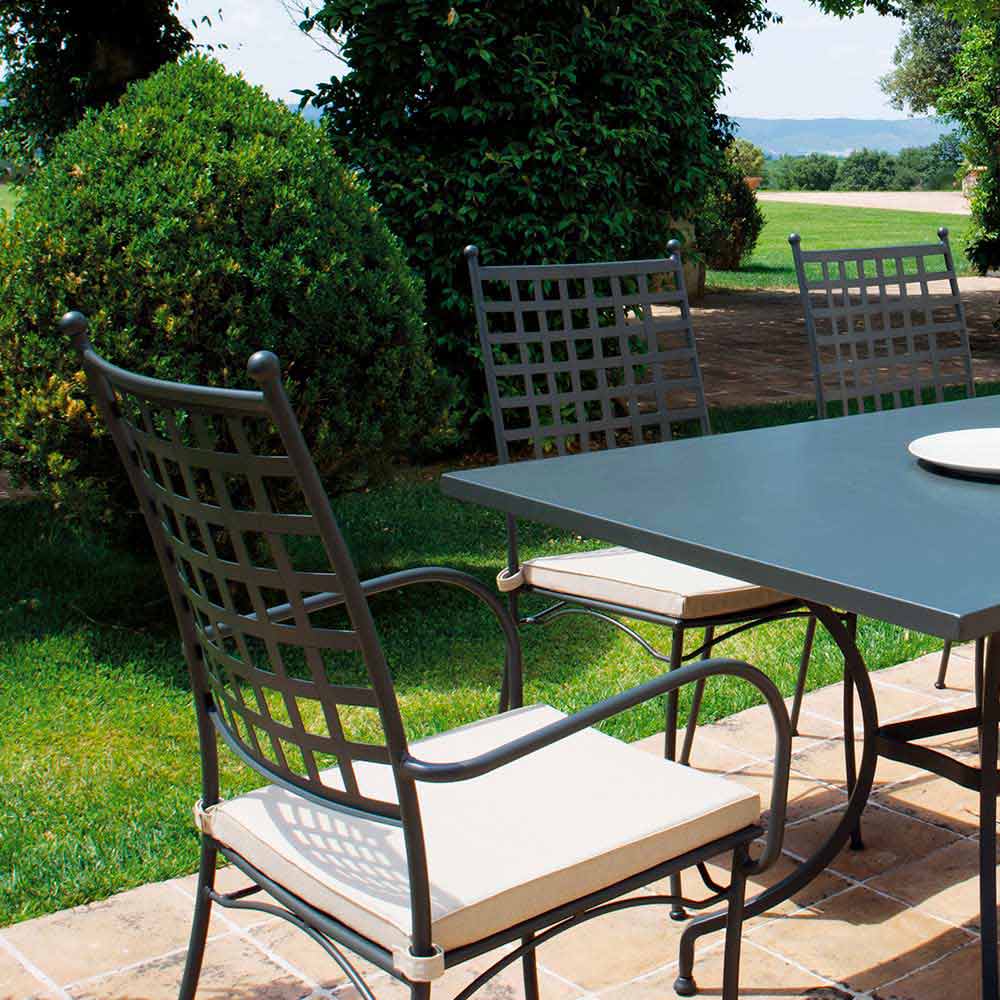 Outdoor-Sessel vereinen klassische Linien mit einem moderneren Stil, der durch die verwendeten Farben und Techniken entsteht. Jeder Sessel wird vollständig in Italien aus pulverbeschichtetem, verzinktem Eisen mit duroplastischen Pulvern hergestellt und ist unglaublich robust und widerstandsfähig. Dabei behält er sein leichtes Design, seine schlichten Linien und seine hohe Funktionalität. Ideal für private Umgebungen wie Gärten und Terrassen, aber auch für Bars und Restaurants, wo sie Persönlichkeit und Charakter verleihen und gleichzeitig dank der Stapelbarkeit bei Bedarf den Raum optimal nutzen.