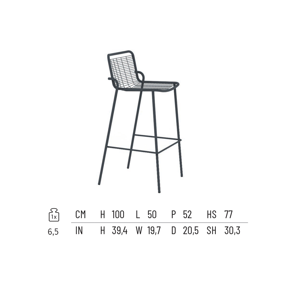 Gartenhocker mit stapelbarer Struktur aus verzinktem, pulverbeschichtetem Eisen, 100 % Made in Italy . Ein modernes Einrichtungsaccessoire mit harmonischen Proportionen , die seine Eleganz unterstreichen, und zarten, schlichten Nuancen, die den poppigen Akzent seiner Ästhetik perfekt ausbalancieren. Seine schlanke Silhouette verleiht ihm optische Leichtigkeit, während die Stapelbarkeit seine Funktionalität maximiert. Die breite und bequeme Sitzfläche macht ihn auch ideal für Objektbereiche wie Bars und Restaurants.