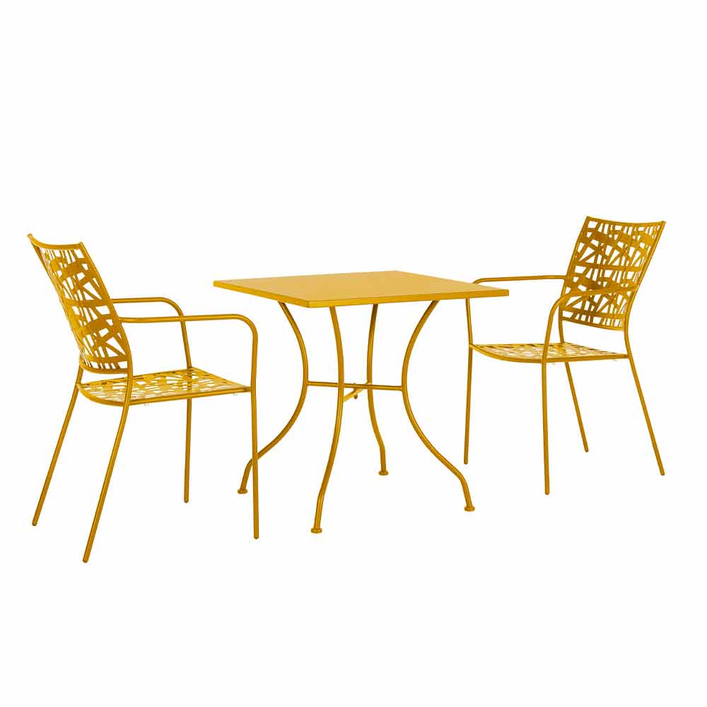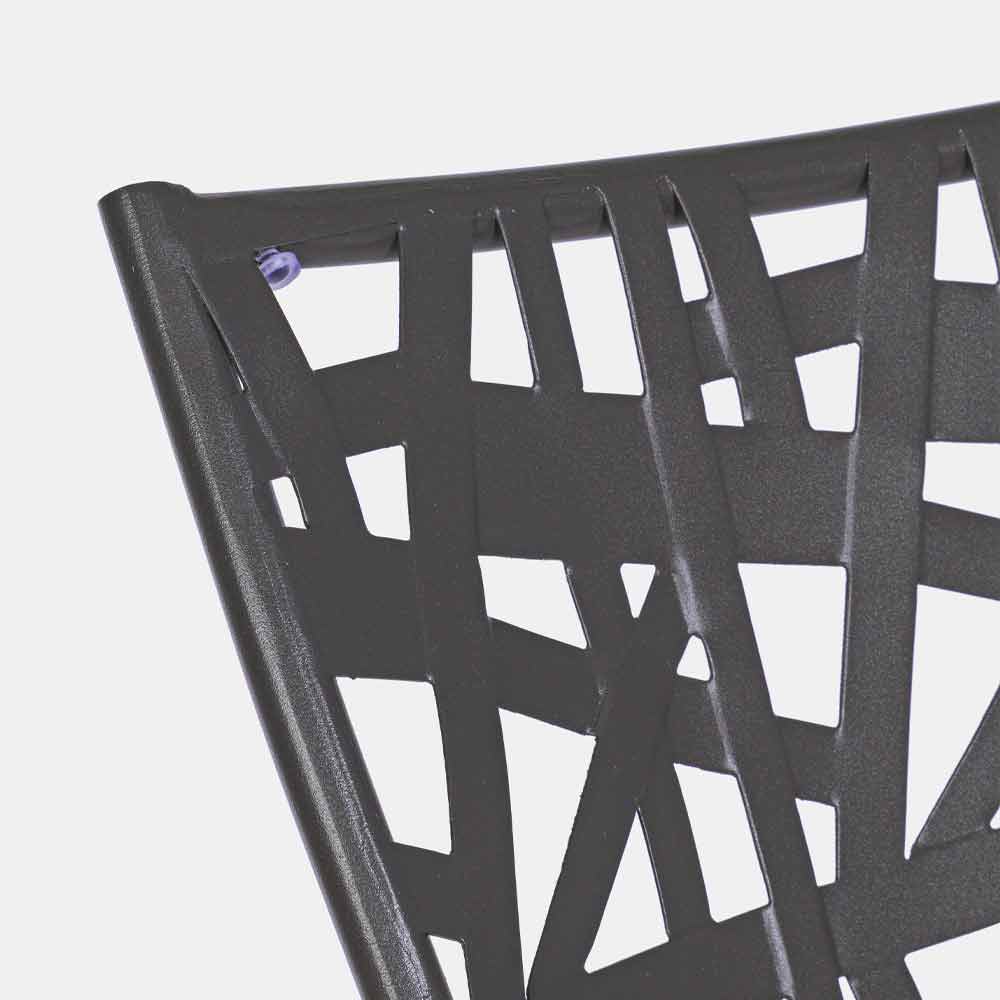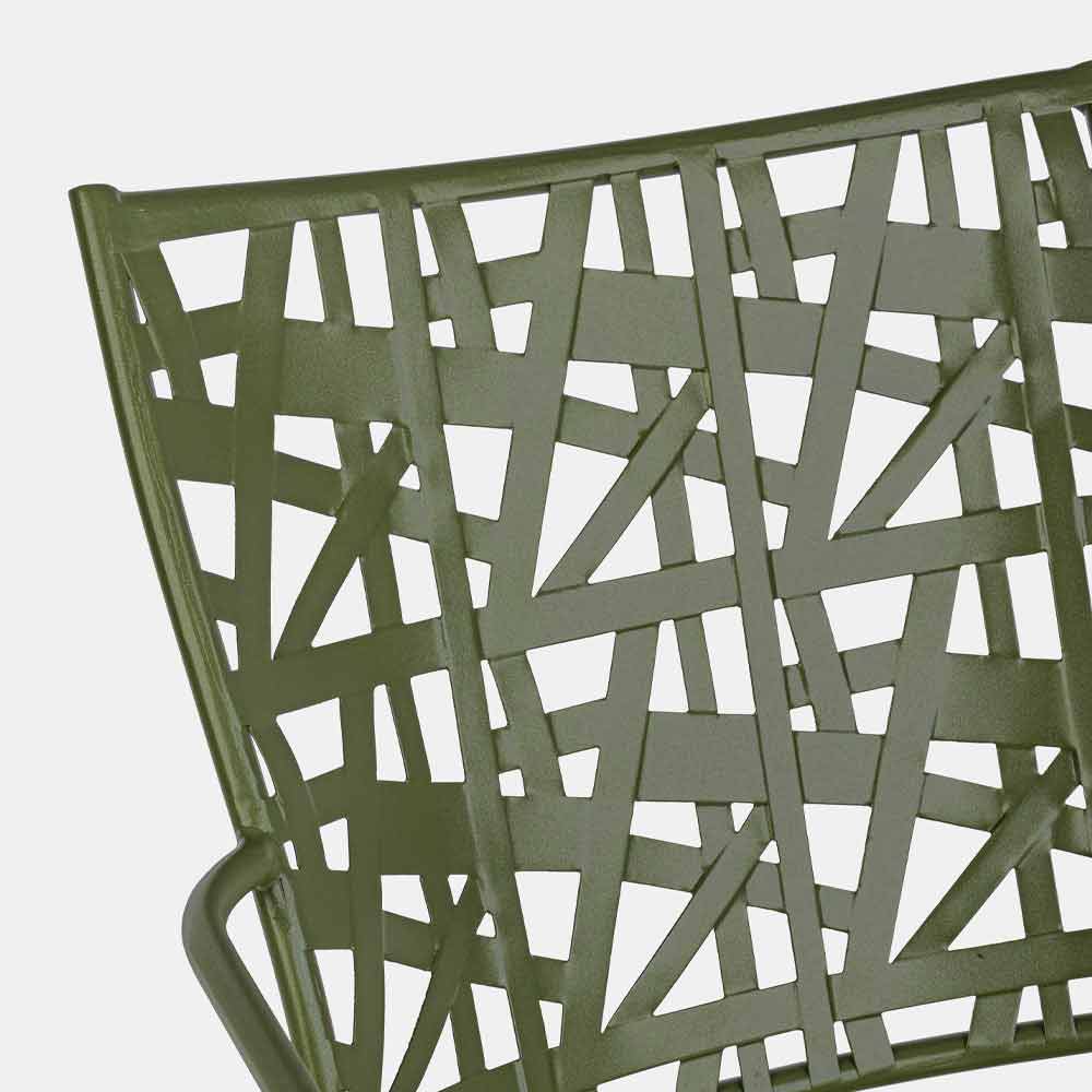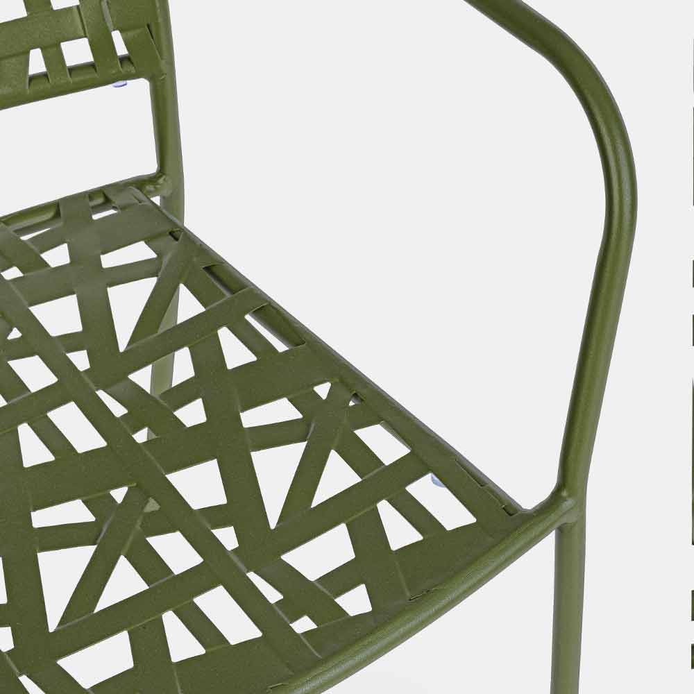 Stapelbarer Gartenstuhl mit lackierter Stahlkonstruktion.
