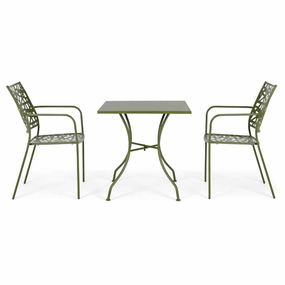 Stahl für den Außenbereich (E-Coating) behandelt und pulverbeschichtet (Polyester) mit mattem Finish. Stapelbar.
