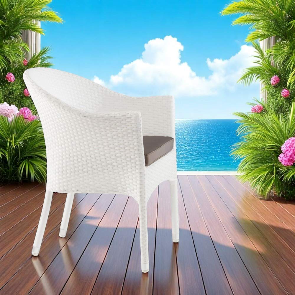 Sein weißer, geflochtener Korbbezug sorgt für einen eleganten und luftigen optischen Effekt, perfekt für alle, die einen natürlichen, aber raffinierten Stil lieben. Das stapelbare Design macht ihn äußerst funktional und platzsparend , ideal sowohl für Wohn- als auch für Objektbereiche wie Hotels , Restaurants oder Außenbereiche .
