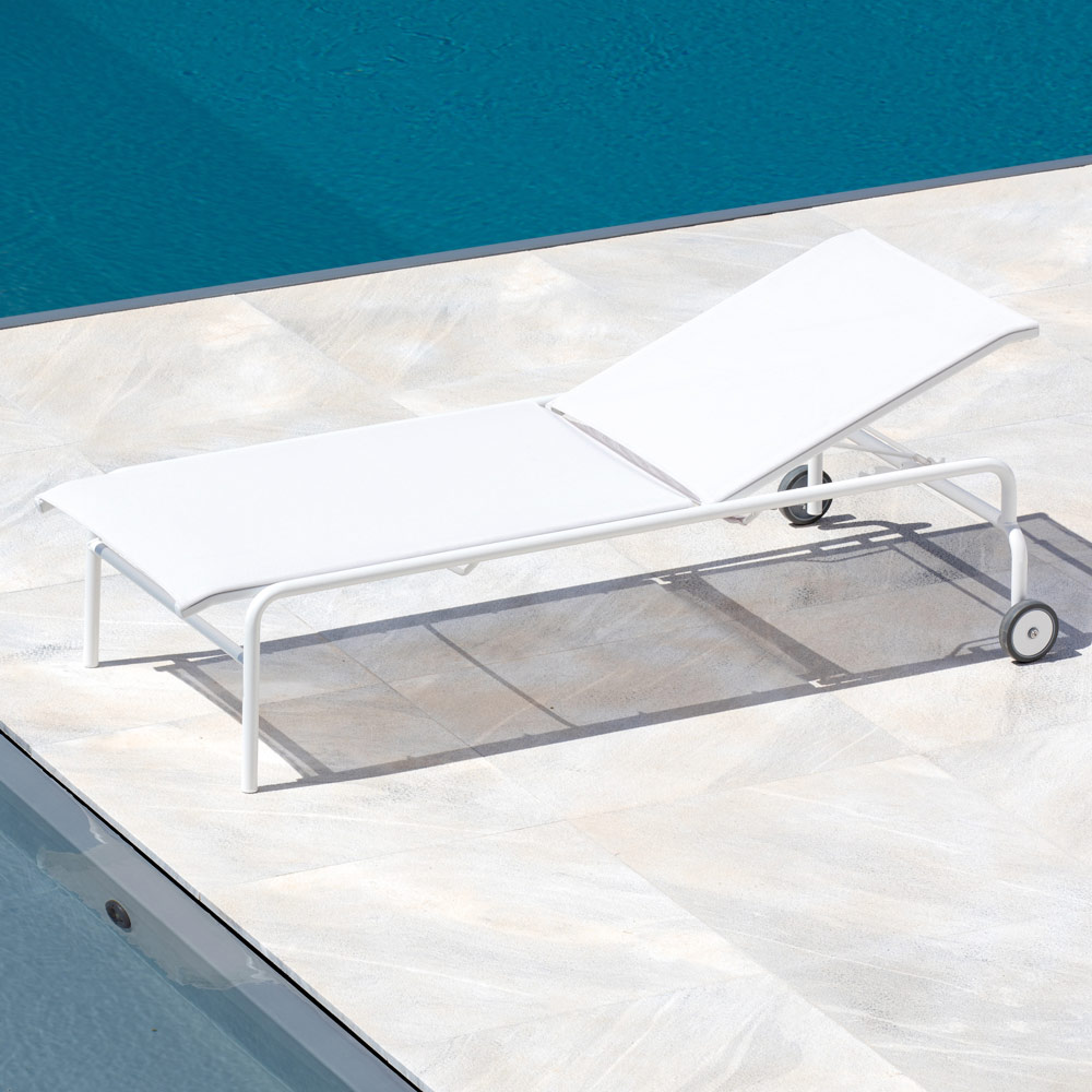 , komplett in Italien hergestellt . Die Verzinkung und die Besonderheit des Texplast-Gewebes machen die Liege