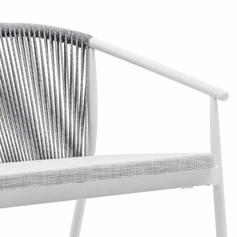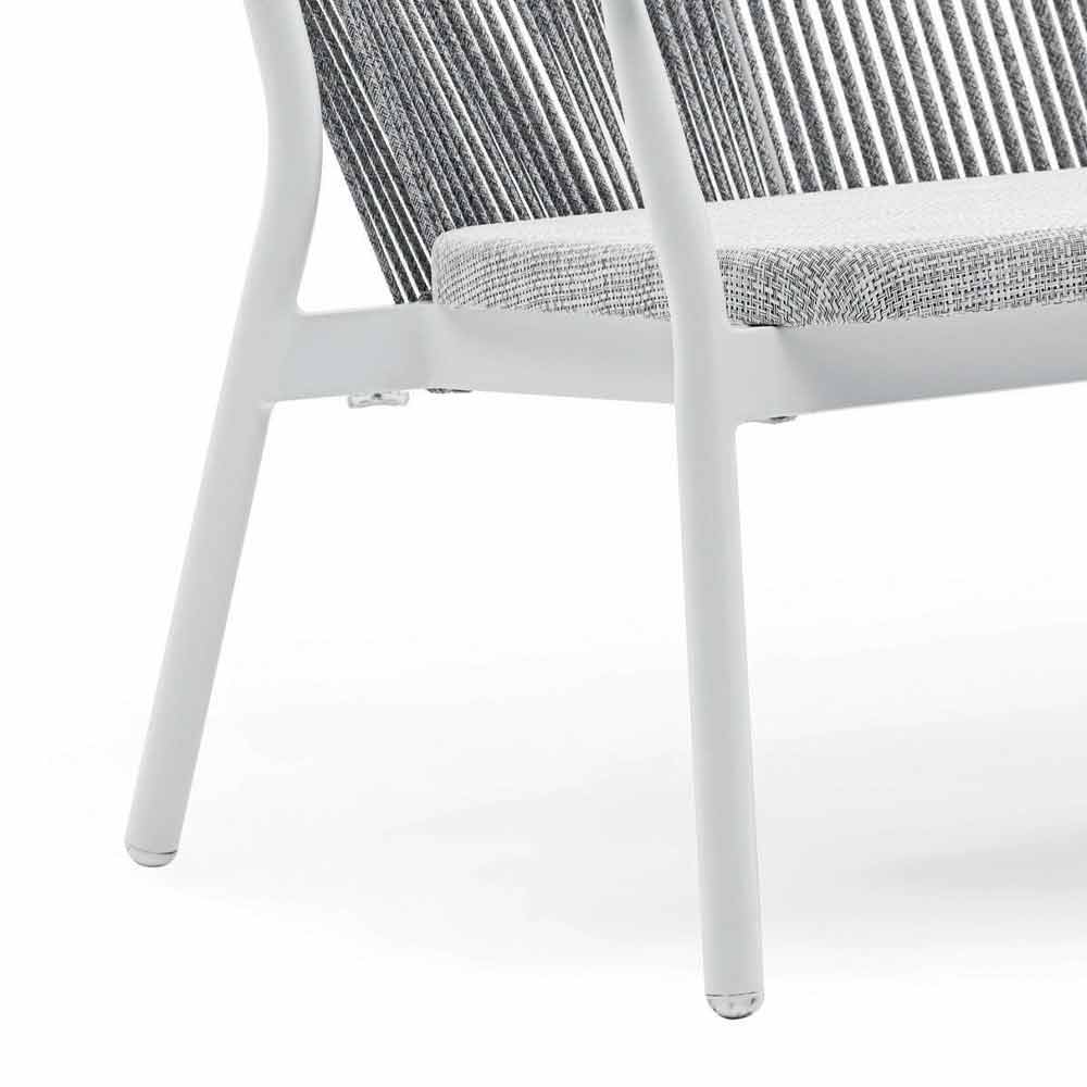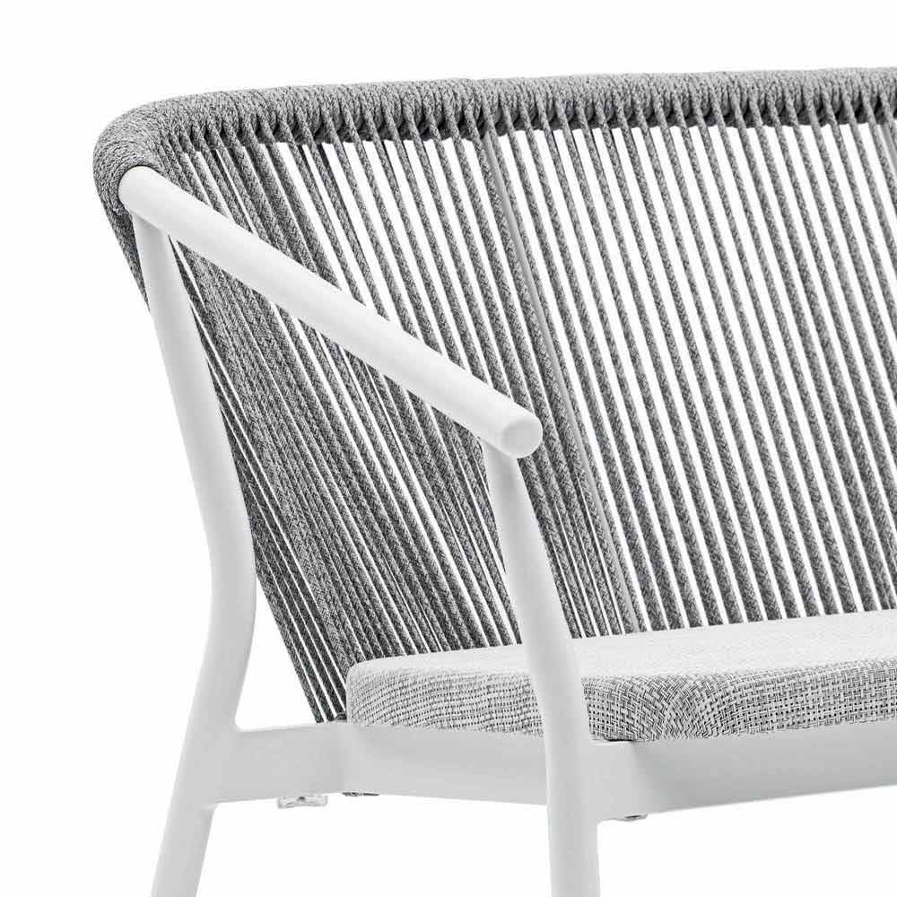 Die Verflechtung der Rückenlehne mit synthetischer Kordel VAR # TEX verbessert die Ästhetik dieses Sofas, das für Tage im Freien in Gesellschaft konzipiert wurde.