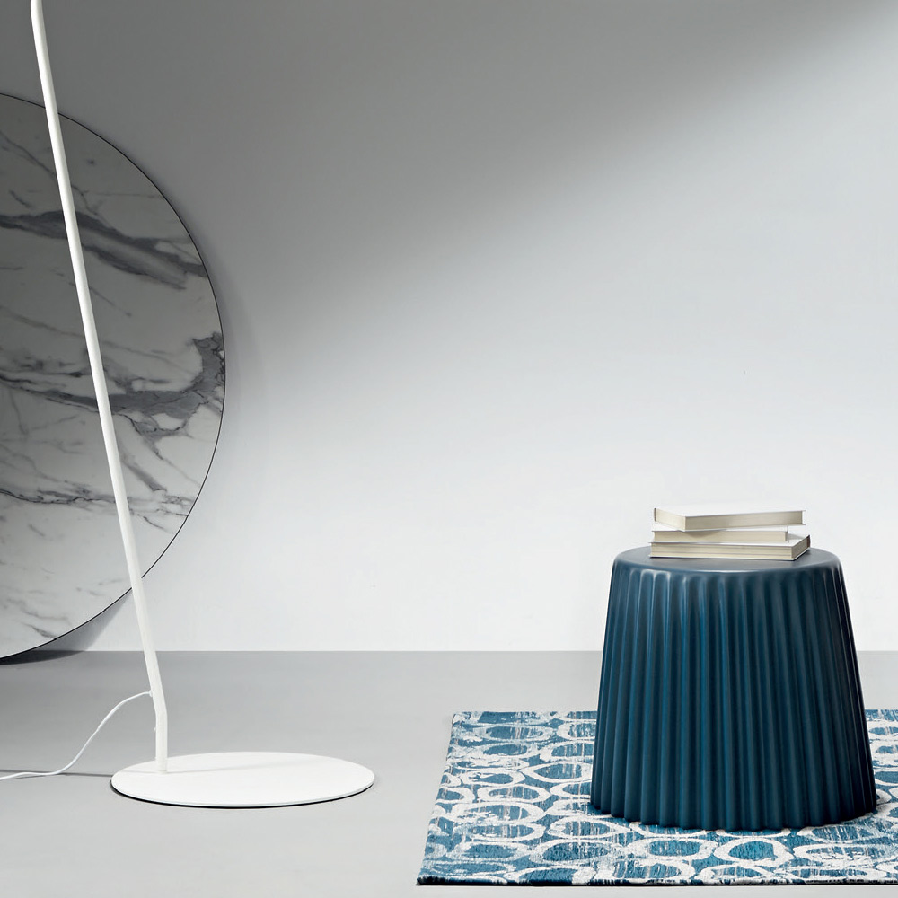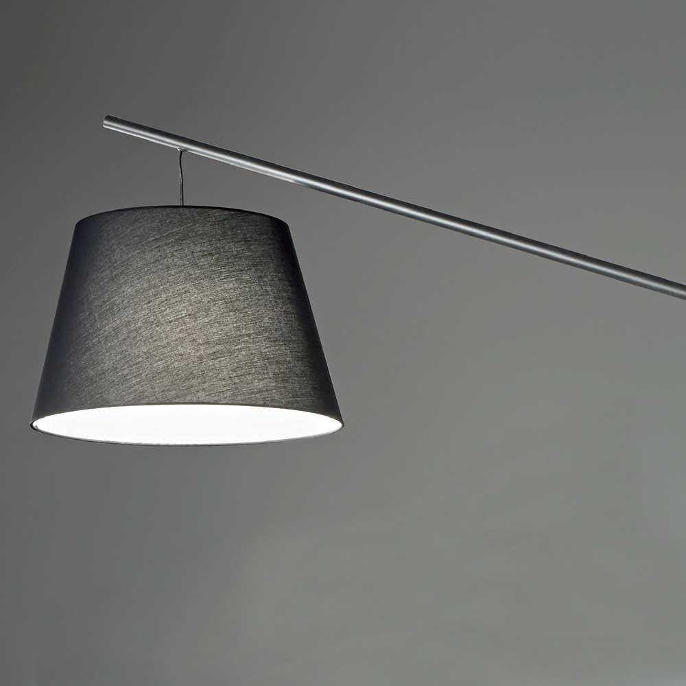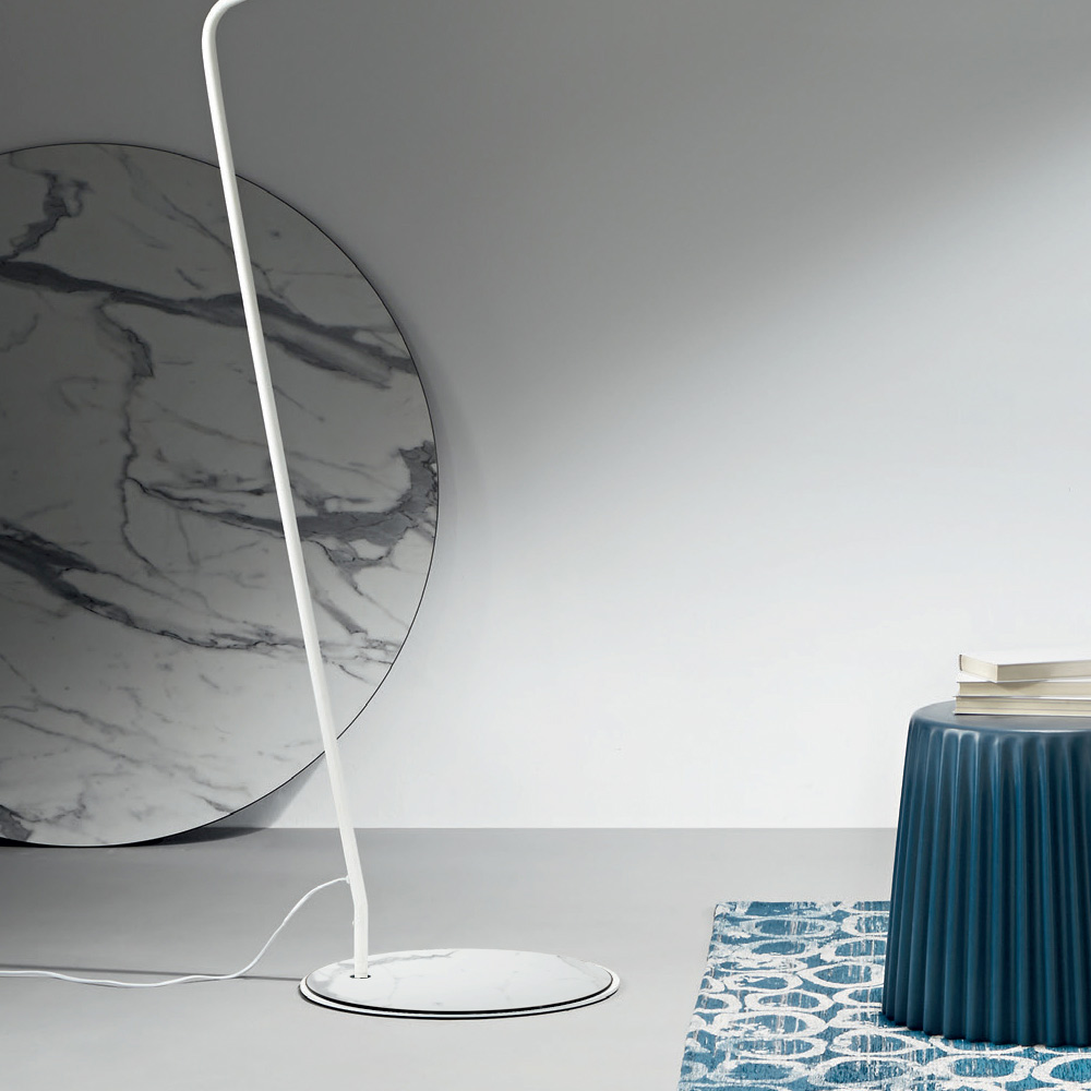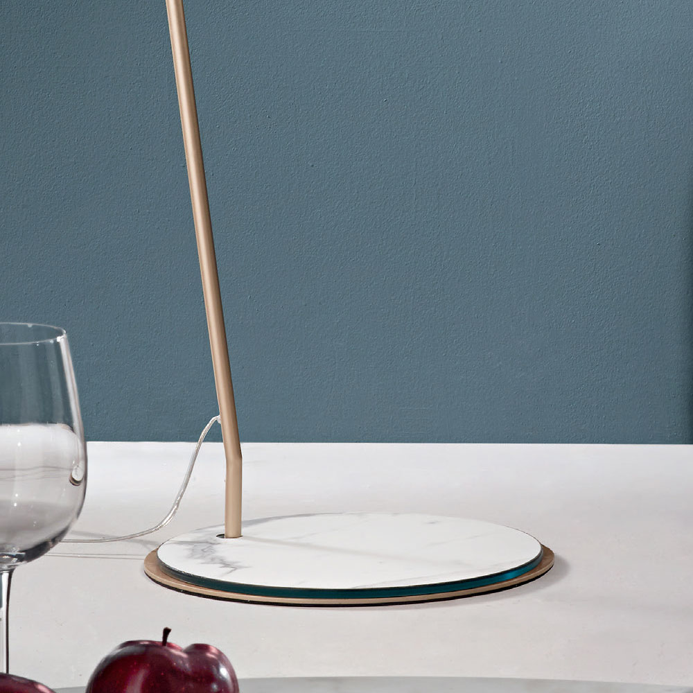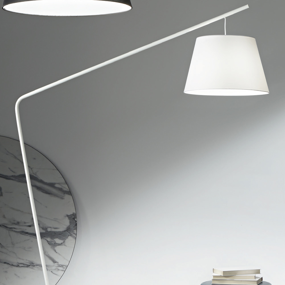 Moderne Stehleuchte mit Metallstruktur und stoffbezogenem PVC- Lampenschirm. Ein Möbelstück, das sich durch ein hochfunktionales Produkt ideal für die nüchterne und elegante Einrichtung Ihres Wohnbereichs eignet und in der Lage ist, eine optimale Beleuchtung mit einem Hauch von einzigartigem Stil zu bieten. Um den Wert seiner ästhetischen Seite zu erhöhen, besteht die Möglichkeit, den Sockel durch die Verwendung einer Abdeckung mit Marmoreffekt zu personalisieren, die dem endgültigen Aussehen des Produkts noch mehr Persönlichkeit und Charakter verleiht.