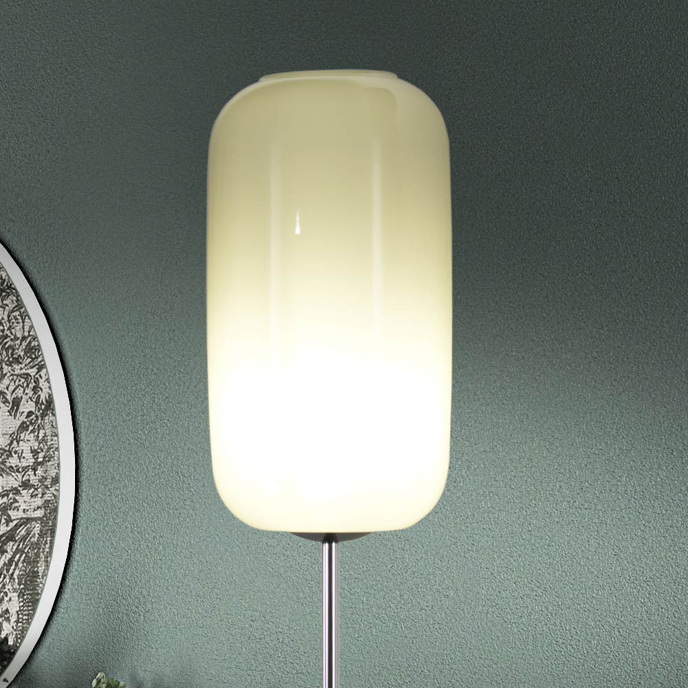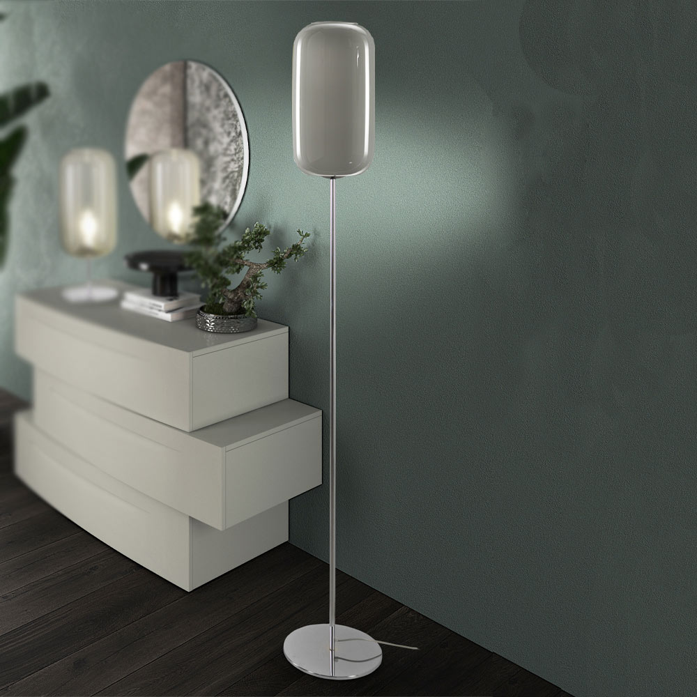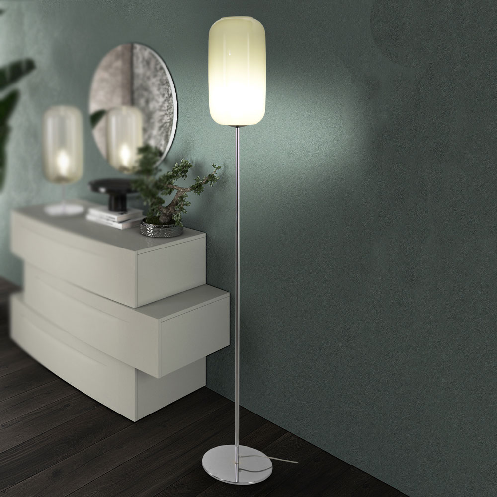 Moderne handgefertigte Stehlampe aus mundgeblasenem Venedig-Glas mit Metallsockel.