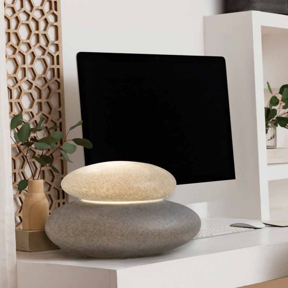 Moderne Design Stehleuchte in Form eines Felsens, mit einer Auswahl an Befestigung und in verschiedenen Farben für drinnen oder draußen.