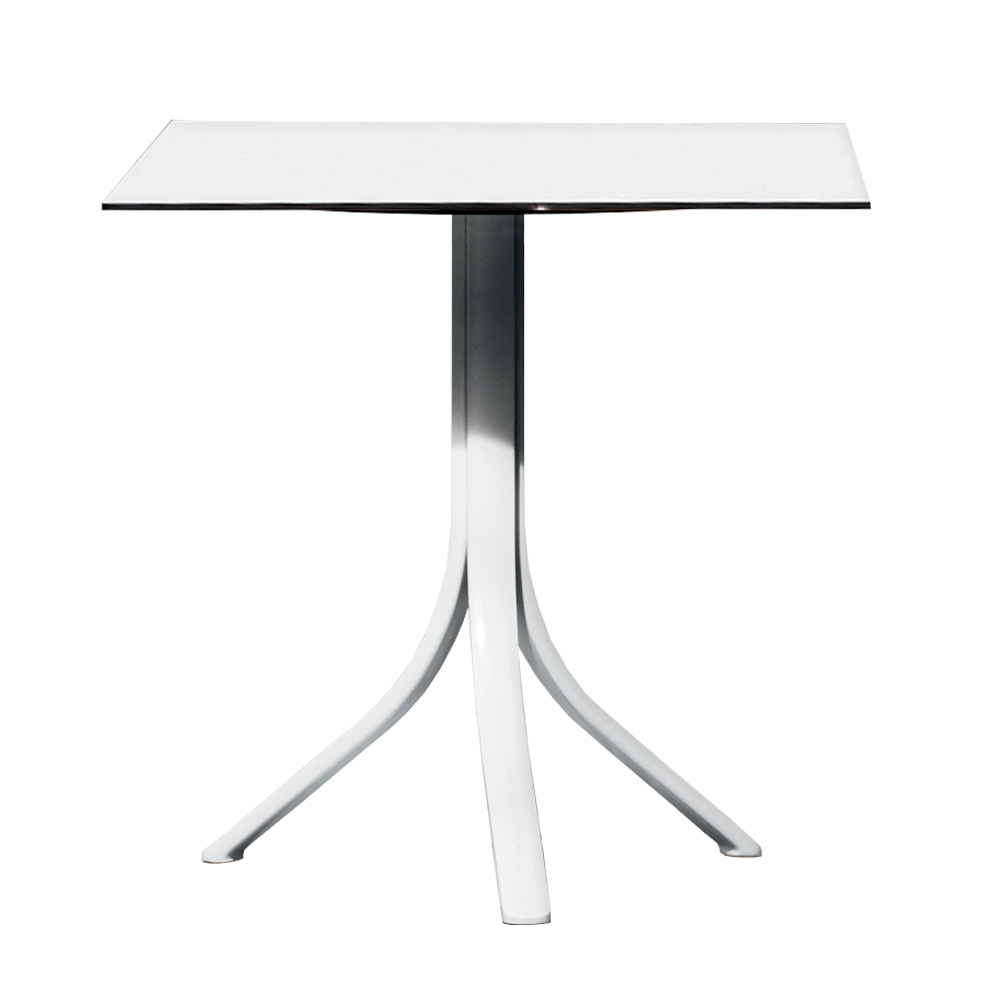Quadratischer Stehtisch im Freien mit liegendem Design aus Aluminium und HPL in 2 Ausführungen, hochwertige Made in Italy.