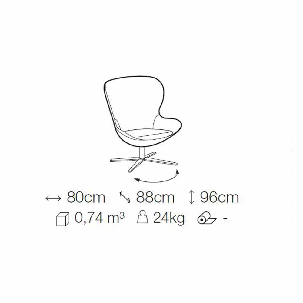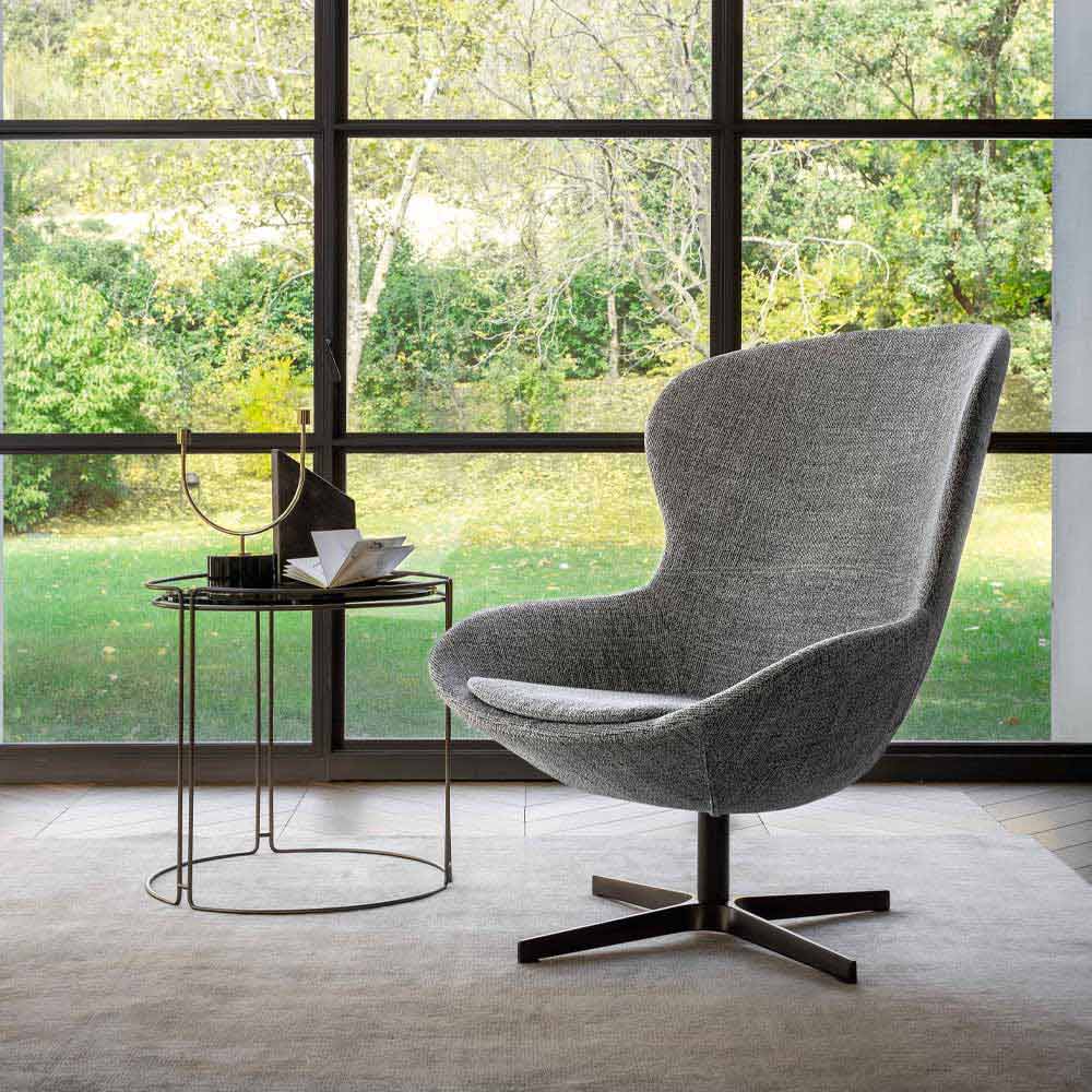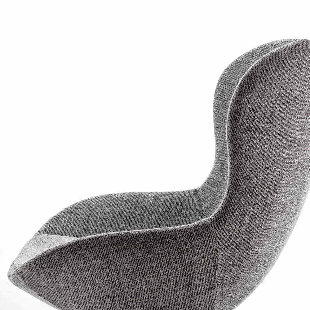 InItalien hergestellter Wohnzimmersessel mit drehbarer Basis aus anthrazitfarben lackiertem Metall und Sitzbezug aus Stoff mit abnehmbarem Kissen in derselben Farbe, gepolstert mit nicht verformbarem Polyurethanschaum (Dichte 30 kg / m³). Seine Struktur zeichnet sich durch weiche und einhüllende Formen sowie durch imposante, aber kalibrierte Proportionen aus, die einem starken Willkommensgefühl Leben einhauchen sollen. Die besondere drehbare Basis macht es noch einzigartiger und spezieller und gleichzeitig besonders vielseitig , ideal sowohl für Wohnbereiche als auch für Umgebungen wie Büros oder Studios, in denen es eine elegante und raffinierte Note sowie eine moderne Seele mit sich bringt durch eine originelle Innovationskraft.