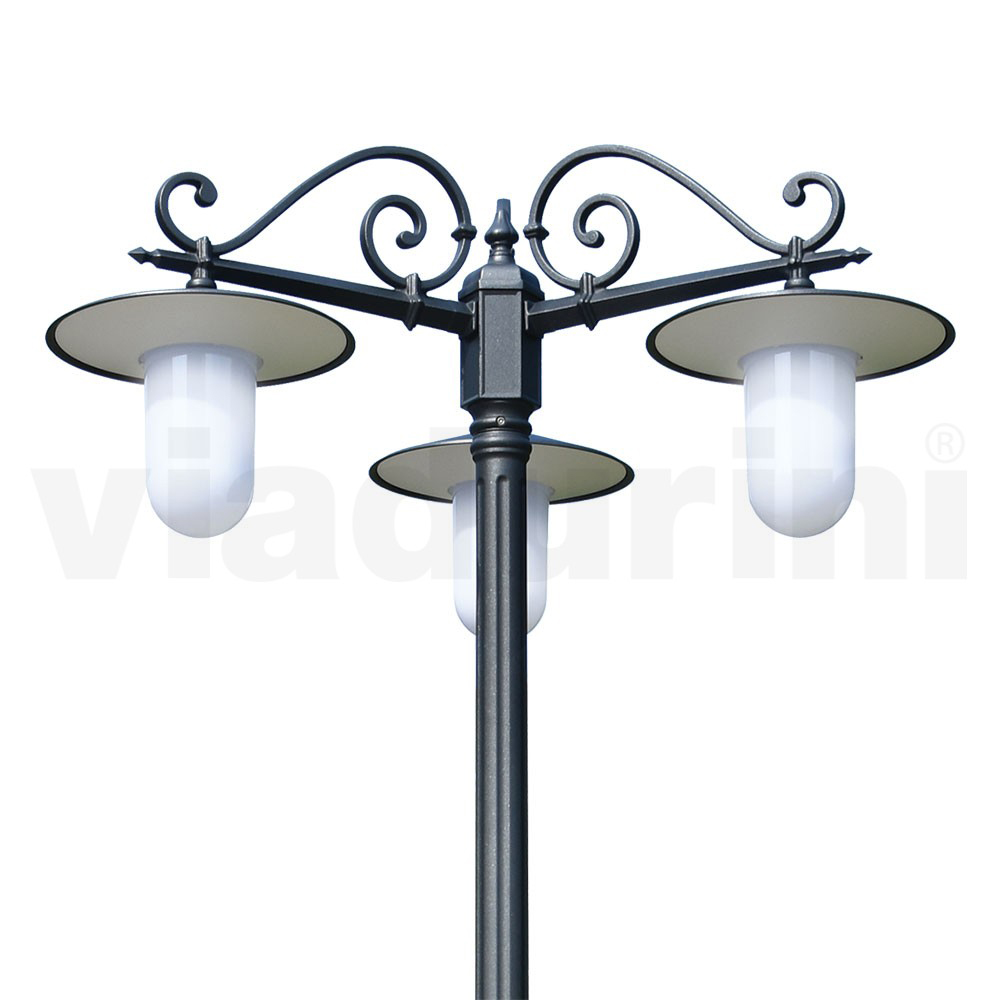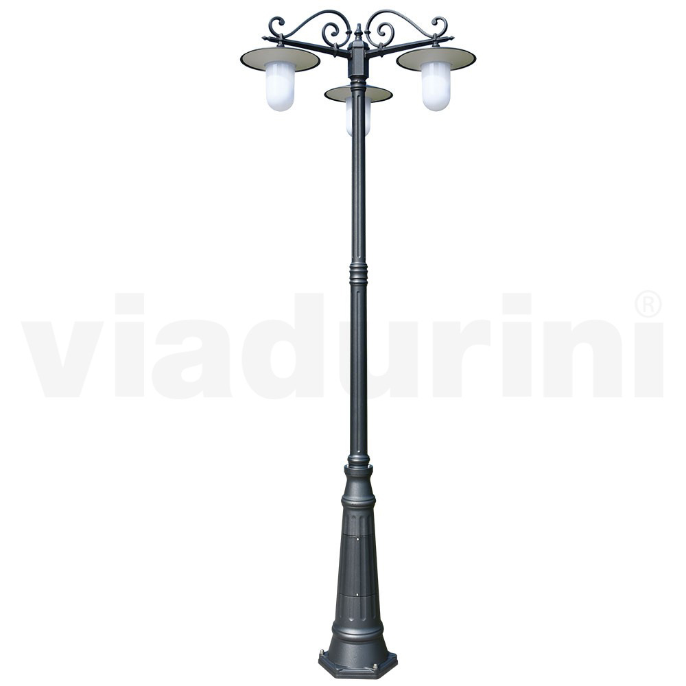 Straßenlampe im Vintage-Stil mit 3 Lichtern aus grauem Aluminium, hergestellt in Italien – Belen