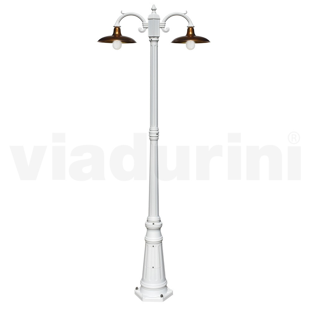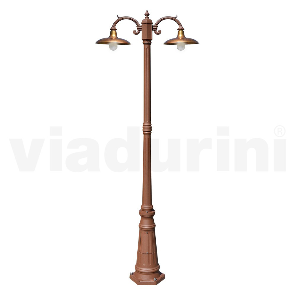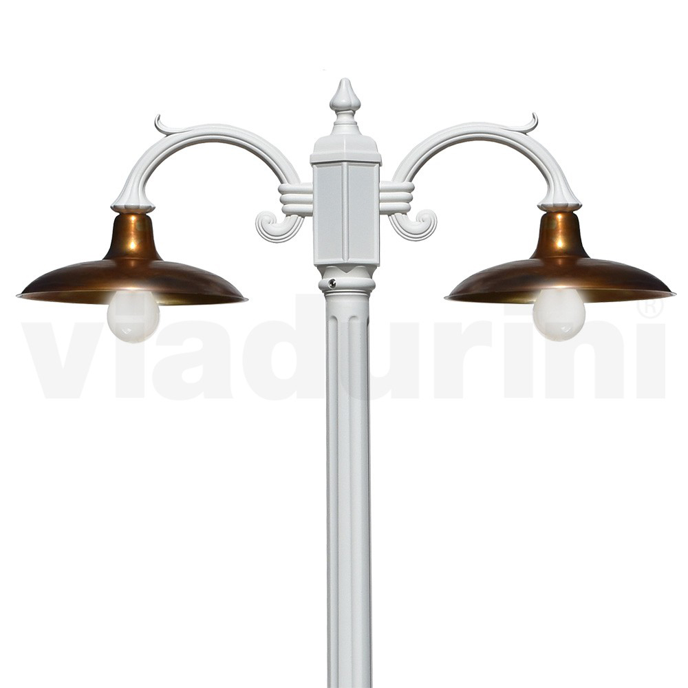 2-flammige Straßenlaterne aus Aluminium im Vintage-Stil mit Messingdiffusor, hergestellt in Italien.