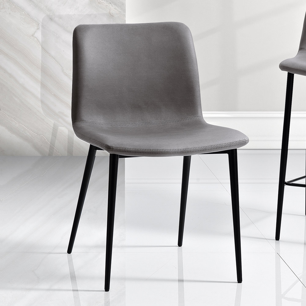 Die weiche Polsterung und die durchdachte Ergonomie versprechen Komfort für lange Sitzungen, sei es ein Abendessen mit Freunden oder ein Arbeitstag. Die Metallbeine sind dünn, aber stark und verleihen dem Stuhl eine solide und langlebige Basis, während ihr minimalistisches Design zu einer Atmosphäre raffinierter Schlichtheit beiträgt.