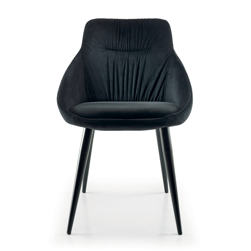 In Italien hergestellter Esszimmerstuhl mit vollständig mit Samt bezogener Stahlstruktur und Beinen aus RAL-lackiertem Stahl , passend zum Sitzbezug. Eleganz und Persönlichkeit sind die Hauptmerkmale dieses wunderbaren Möbelstücks mit einem exklusiven und raffinierten Stil . Die besondere Form der Rückenlehne macht ihn besonders originell und bietet gleichzeitig eine bequeme und einladende Sitzfläche, ideal für alle, die einen Stuhl suchen, der ebenso funktional wie designorientiert ist. Die perfekte Kombination aus der edlen Note von Samt und der Modernität von Stahl erweckt eine innovative Einrichtungsidee zum Leben, die jedes Esszimmer oder jede Küche auf einzigartige Weise mit einer zeitgenössischen Ästhetik vervollständigt.