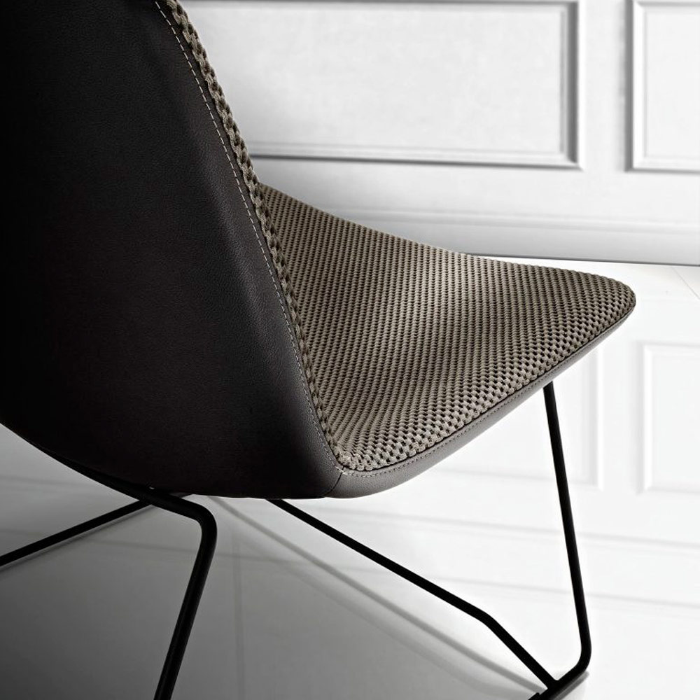 Die dünnen, aber stabilen Metallbeine strahlen Stärke und Modernität aus und schaffen eine perfekte Balance zwischen optischer Leichtigkeit und struktureller Stabilität. Die Materialauswahl und das durchdachte Design sorgen für Komfort und Langlebigkeit und machen diesen Stuhl zu einer idealen Ergänzung sowohl für den privaten als auch für den professionellen Bereich.